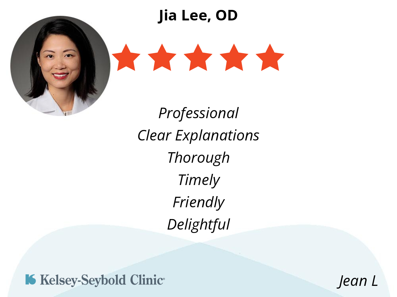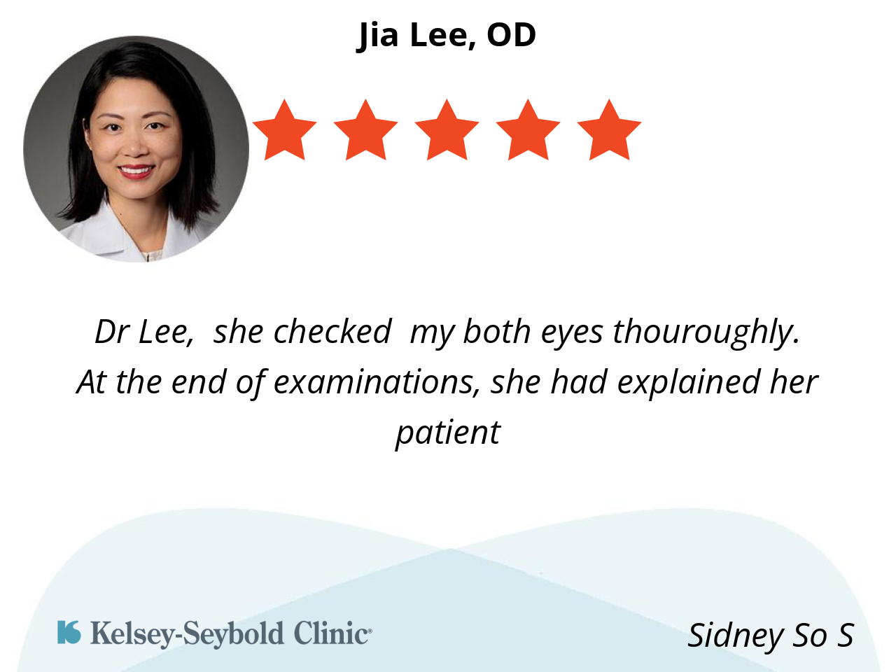 Dr Lee is thorough and explains all issues the might arise. I am pleased to have her managing my vision needs.
