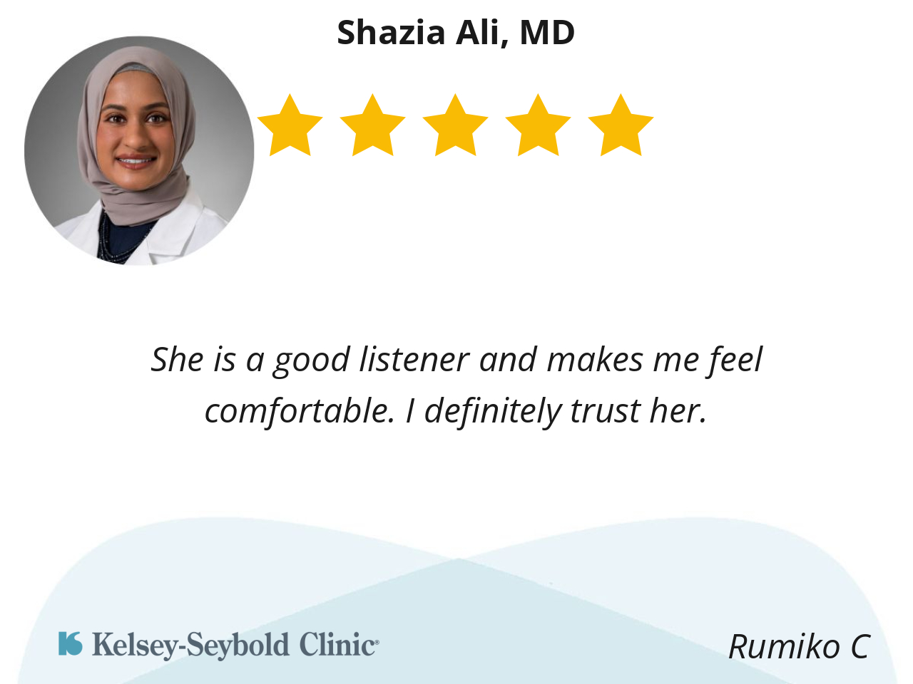 She is a good listener and makes me feel comfortable. I definitely trust her.