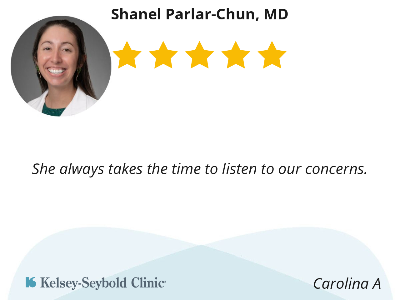 Dr. Parlar-Chun was very compassionate and understanding about my daughter’s health issues and helped us resolve them quickly.
