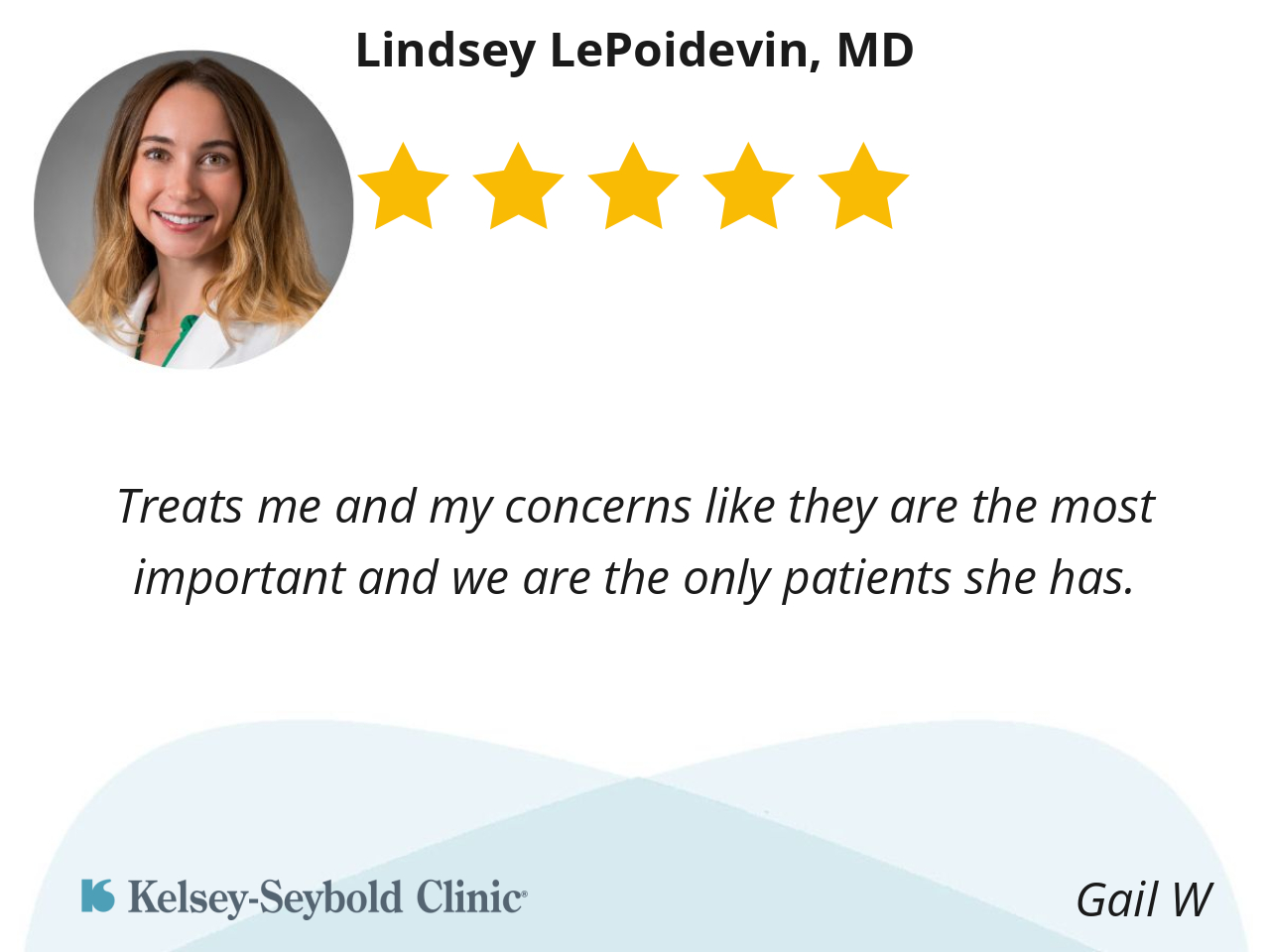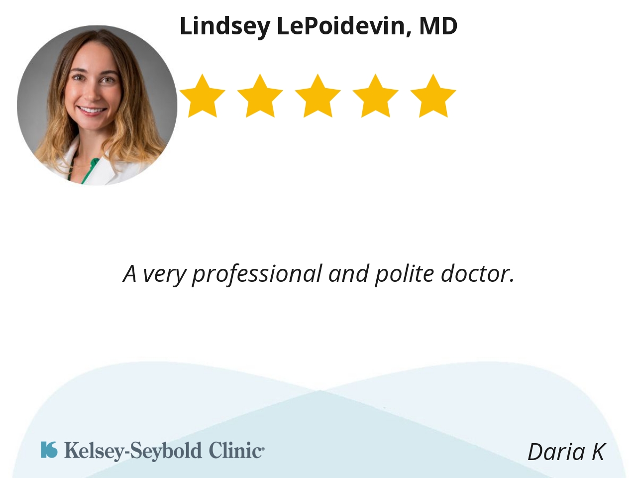 Lindsey was polite and thrilled with her questions. She acknowledged my concerns with sympathy and took the initiative of ordering the preliminary labs and test to be done. This is my first time hearing a doctor stating "I would like to see your lab results first to take the correct recommendations". I love that Lindsey took the time to talked to me. She is my OB-GYN .