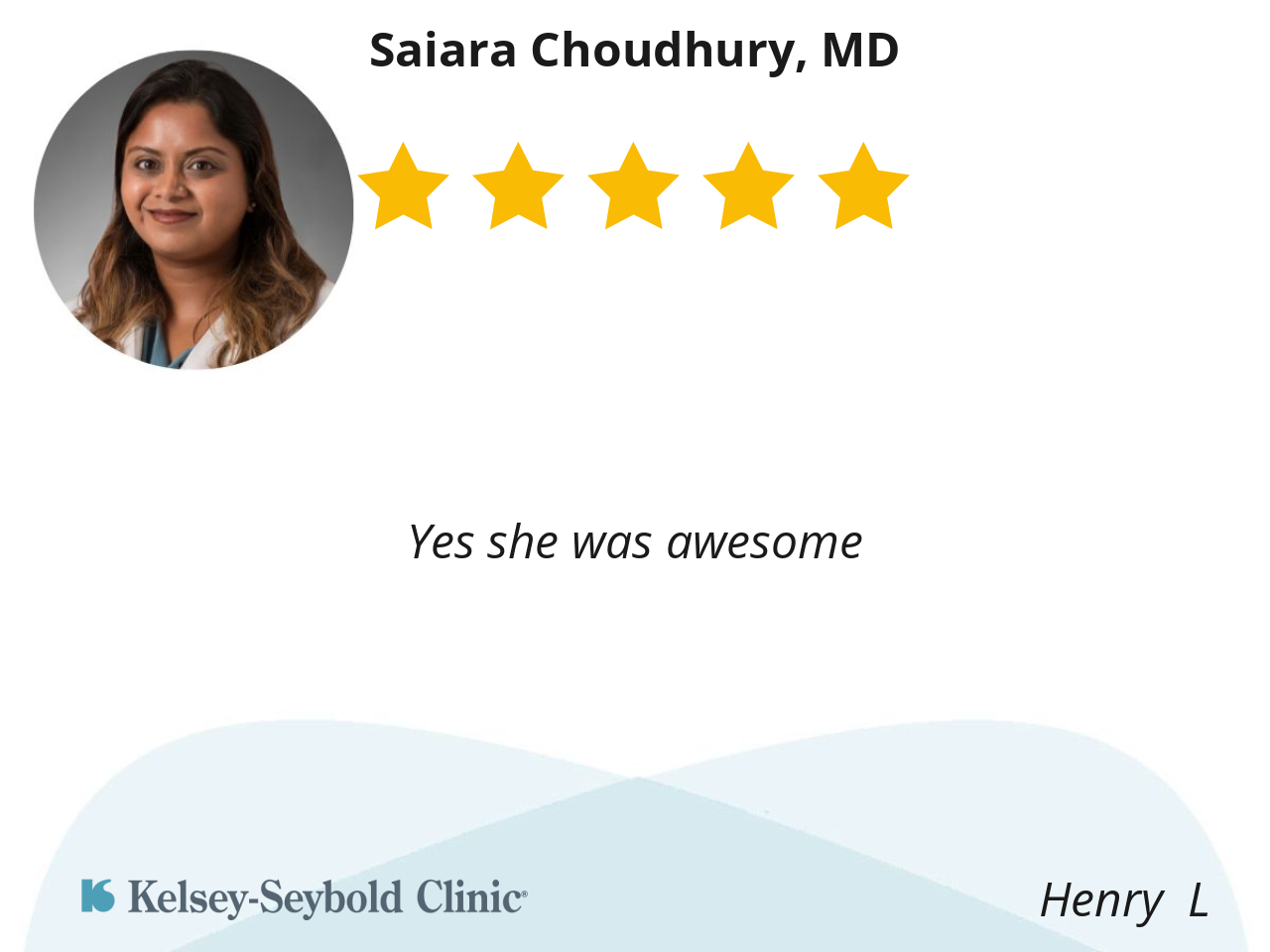 She really knows her business! She listened to my concerns and asked a lot of questions which led her to a diagnosis. Great bed side manner. She will be calling me to follow up on my reaction to the new prescriptions.