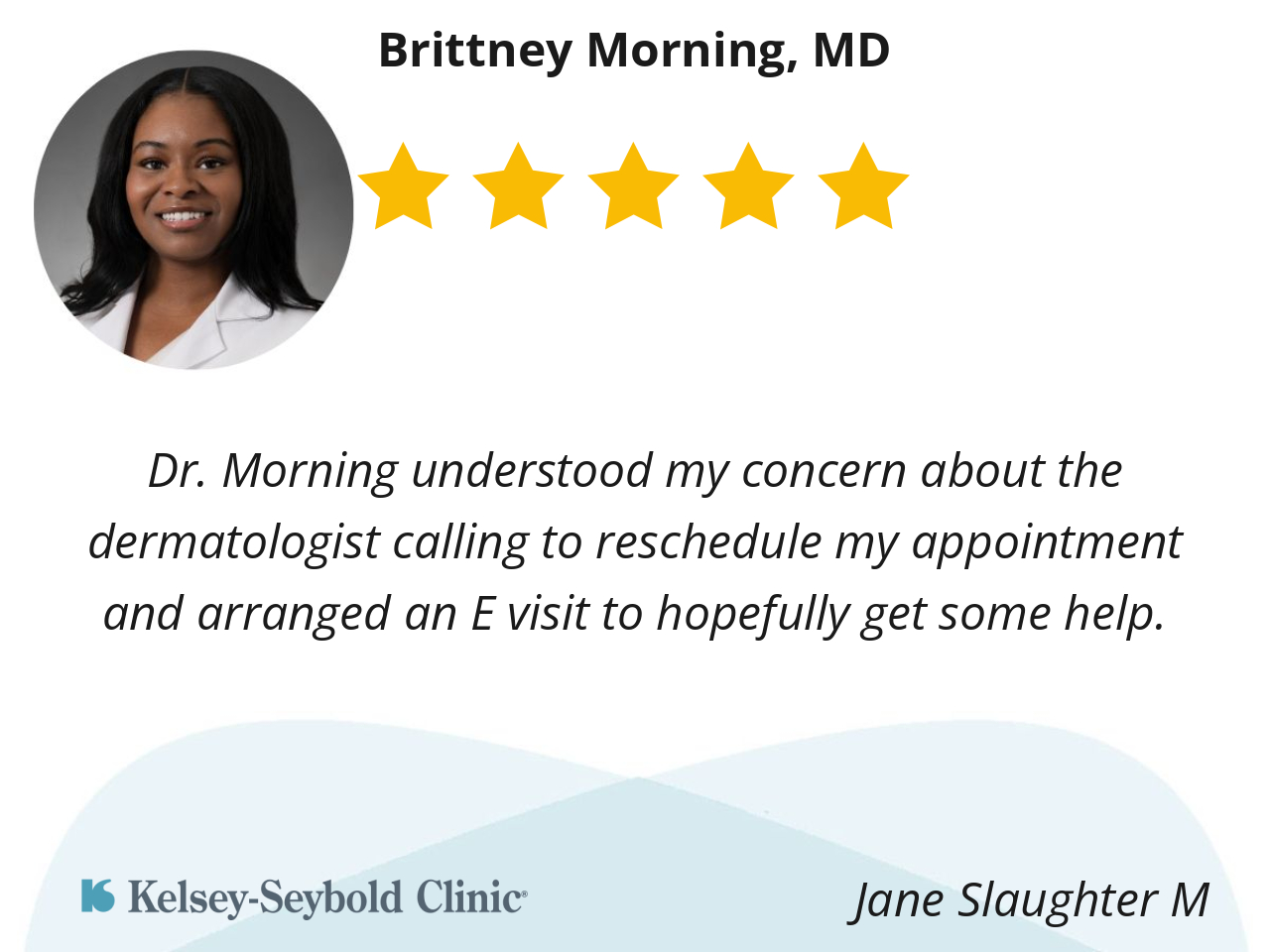 Dr. Morning understood my concern about the dermatologist calling to reschedule my appointment and arranged an E visit to hopefully get some help.