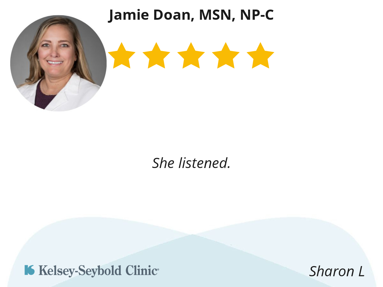 She listened to this crabby old lady and was were professional. She was sympathetic and re-assuring about services going forward. She explained why Dr. Juneau was unavailable and that was a big part of why my original appointment that was made a year ago was in danger of being changed. She also sent messages about how the My Kelsey Online was mixed up with the time of my appointment.