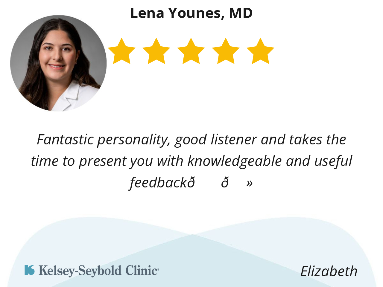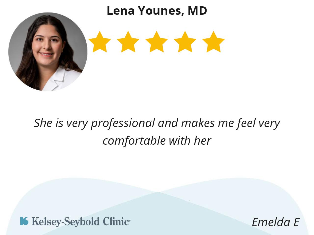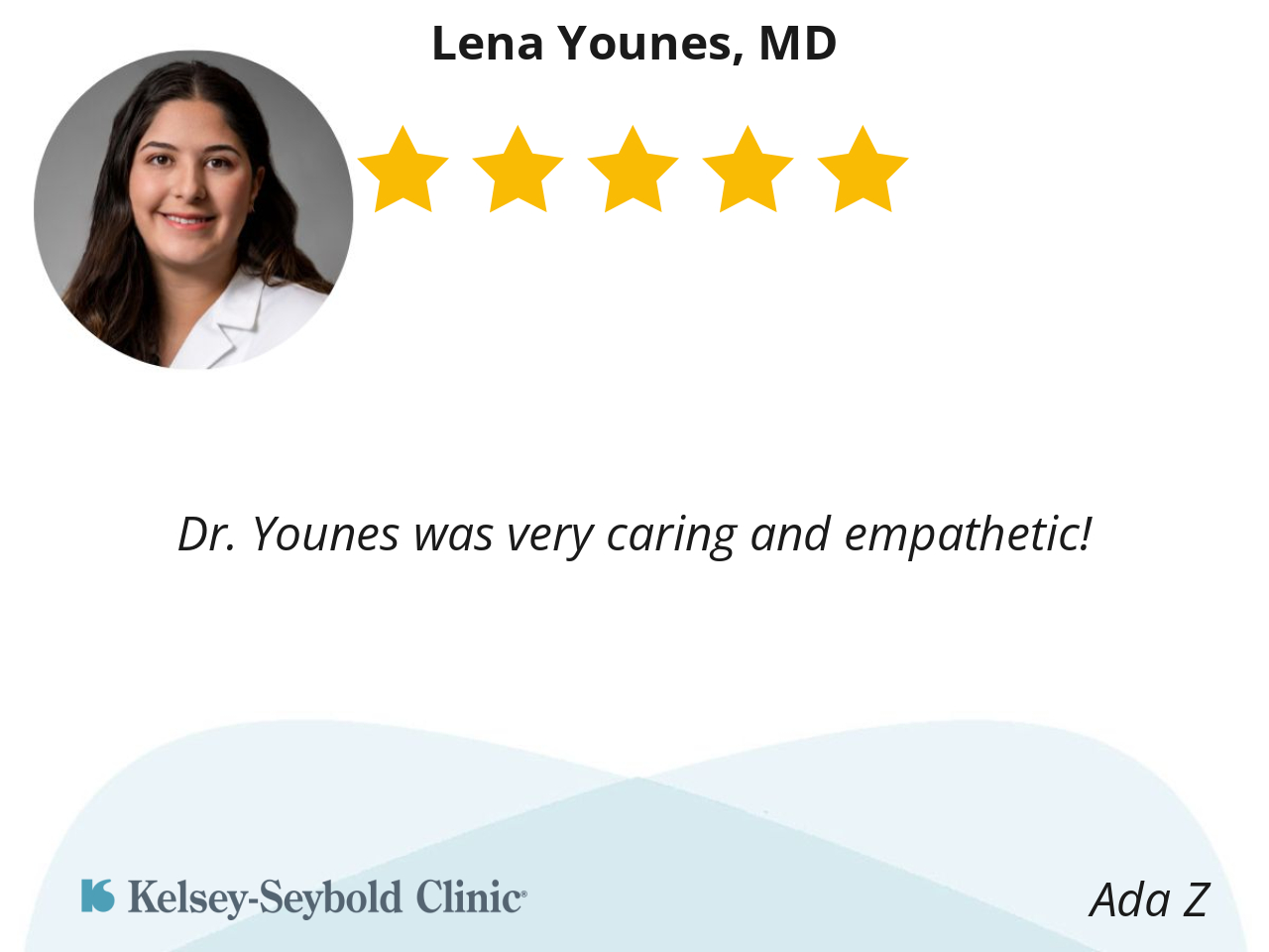 Grateful that I found Dr. Younes. I was in need of a last minute appointment since my Dr. is booked 3 months out and moved towards downtown. Dr. Younes was the absolute sweetest, professional, patient and gentle. Not only did she listen to my concerns but also reassured me and answered all of my questions. Loved that it was easy to get in to see her. Will definitely be switching over to her care. Let me not forget about her MA who was also amazing since the very beginning.