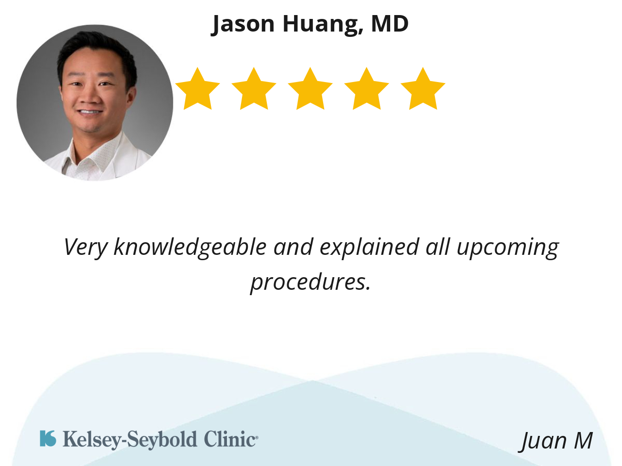 He’s very knowledgeable and thorough. He keeps you informed and has great Dr. / patient care manners. Made us feel very comfortable with care.