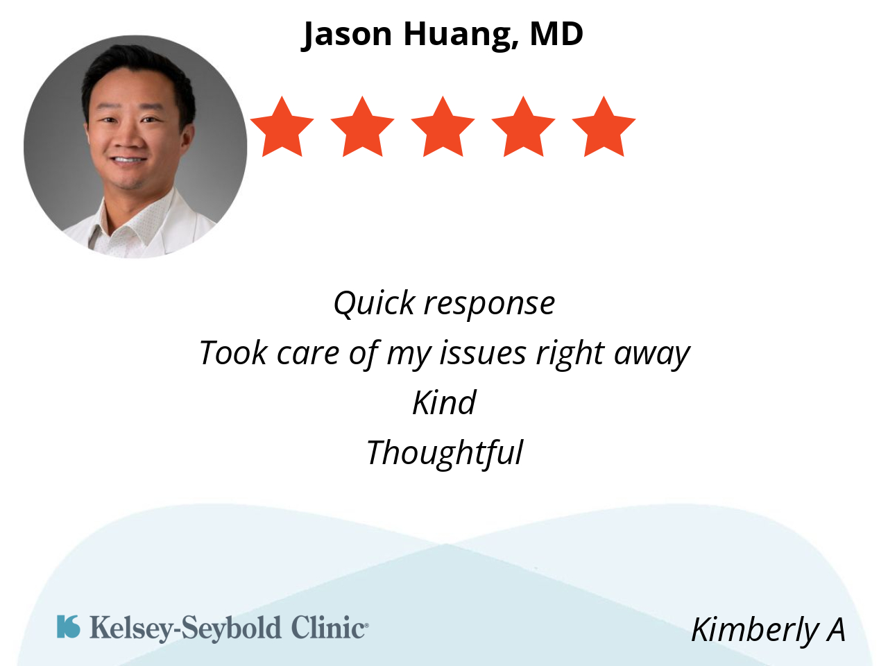 Dr. Huang is clear in his health assessment and has great interpersonal skills.