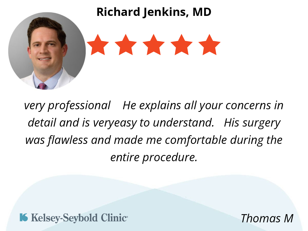 Dr. Jenkins is kind, compassionate and attentive to his patients issues and concerns during every appointment. His evaluations are thorough and his diagnosis and treatment are explained fully and with clarity as the patient I can understand.