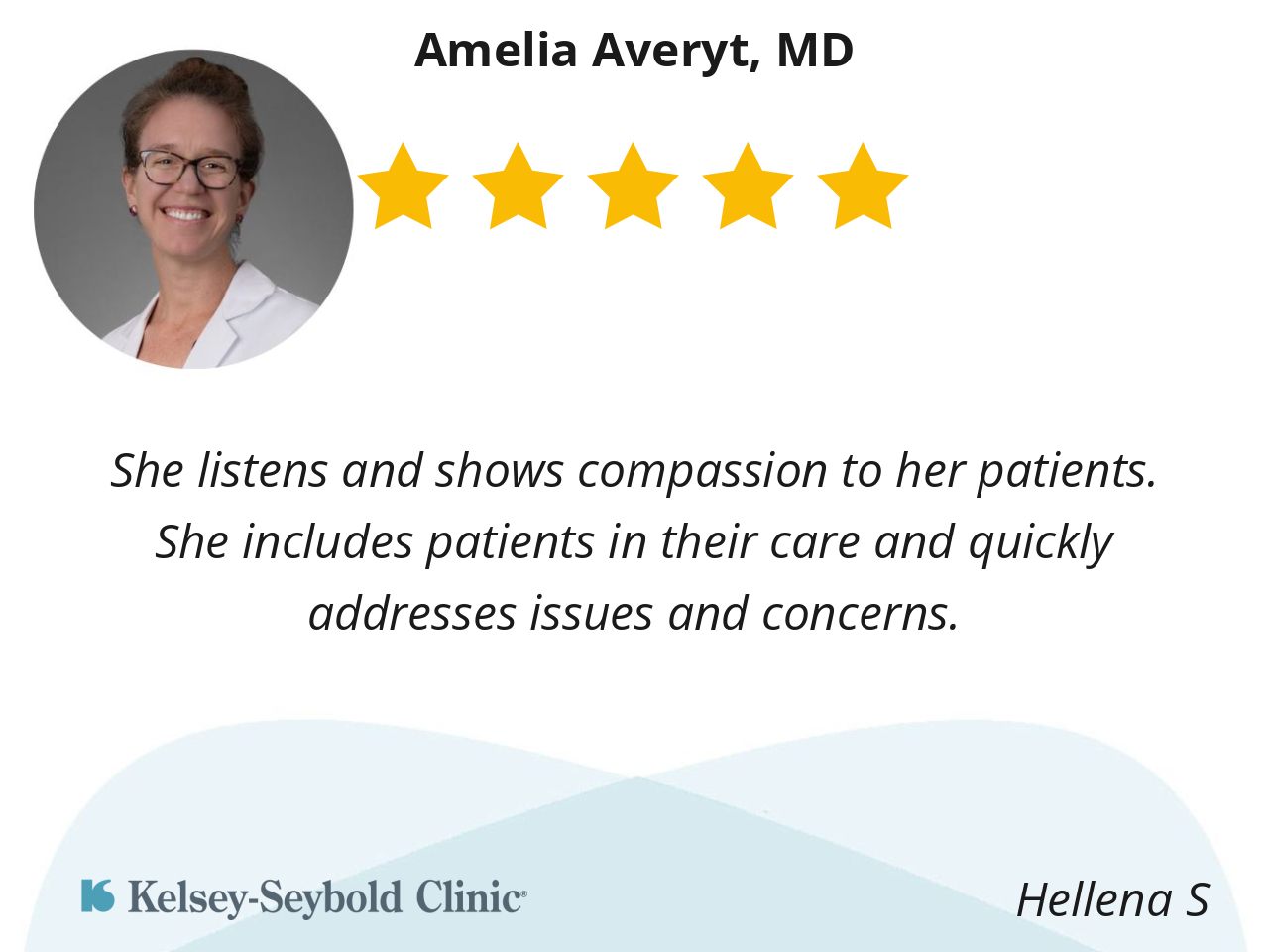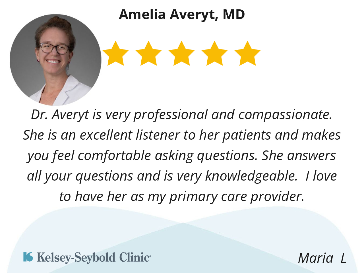 Dr. Averyt is very professional and compassionate. She is an excellent listener to her patients and makes you feel comfortable asking questions. She answers all your questions and is very knowledgeable. I love to have her as my primary care provider.