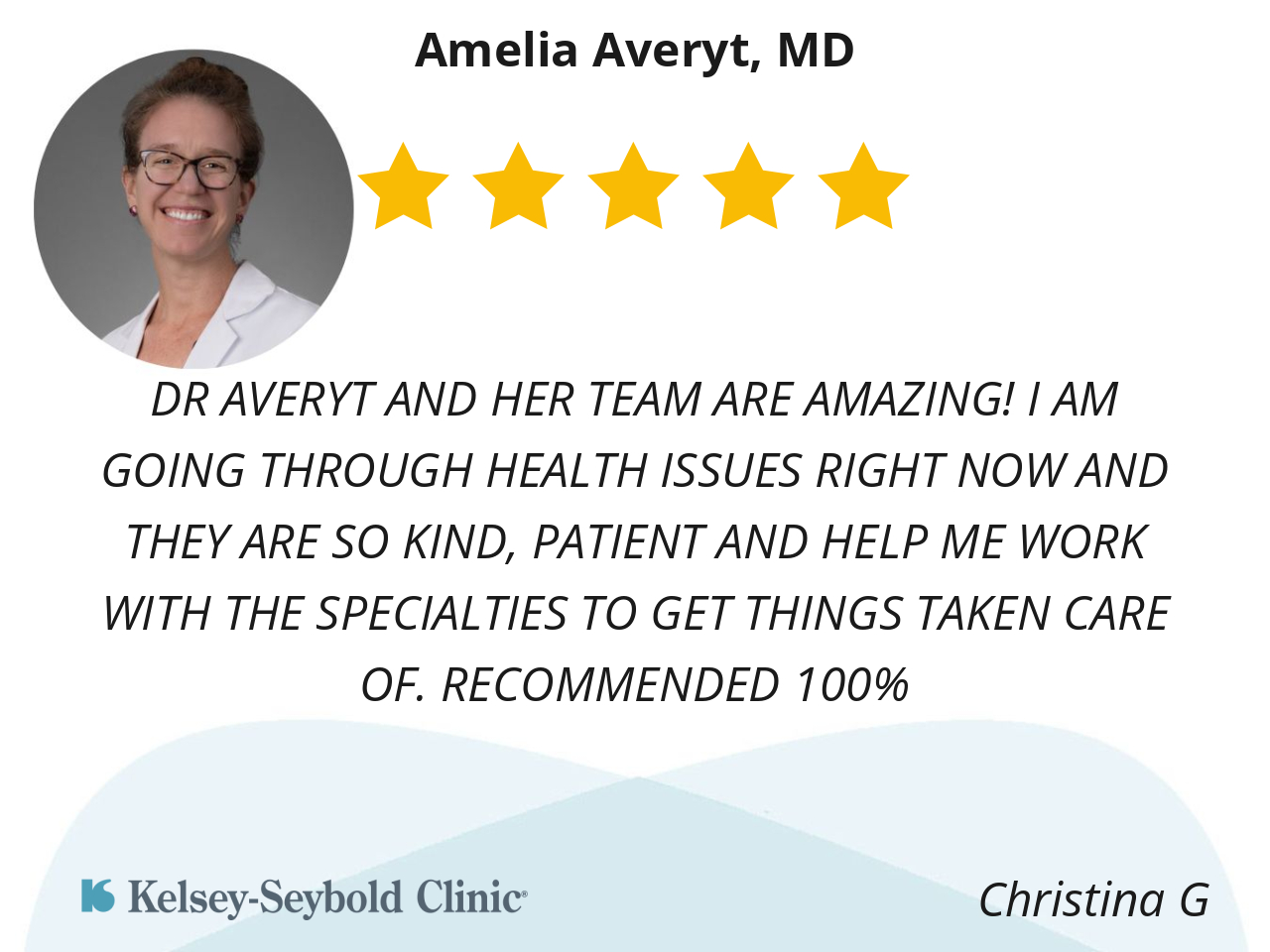 DR AVERYT AND HER TEAM ARE AMAZING! I AM GOING THROUGH HEALTH ISSUES RIGHT NOW AND THEY ARE SO KIND, PATIENT AND HELP ME WORK WITH THE SPECIALTIES TO GET THINGS TAKEN CARE OF. RECOMMENDED 100%