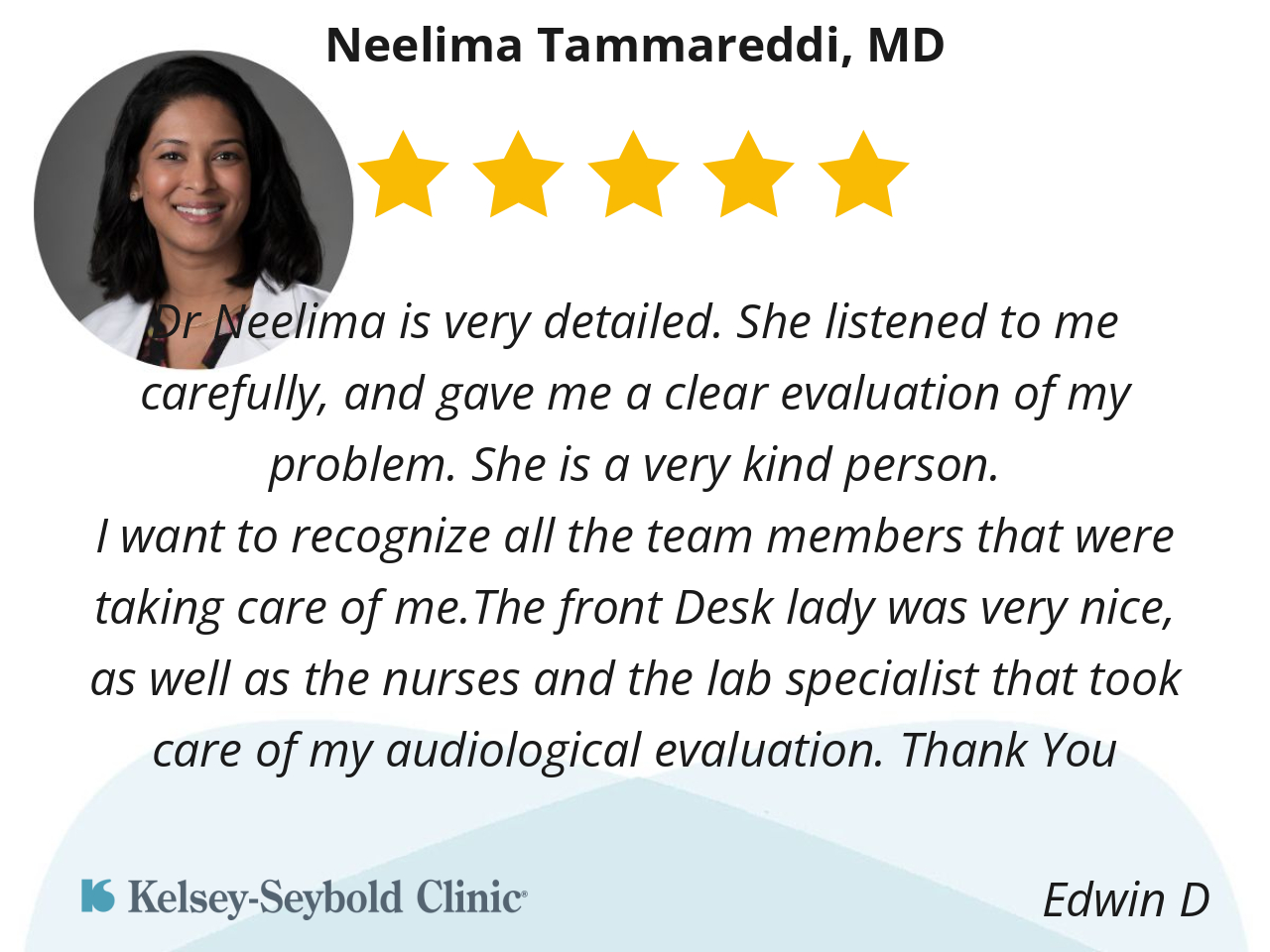 I want to recognize all the team members that were taking care of me.The front Desk lady was very nice, as well as the nurses and the lab specialist that took care of my audiological evaluation. Thank You