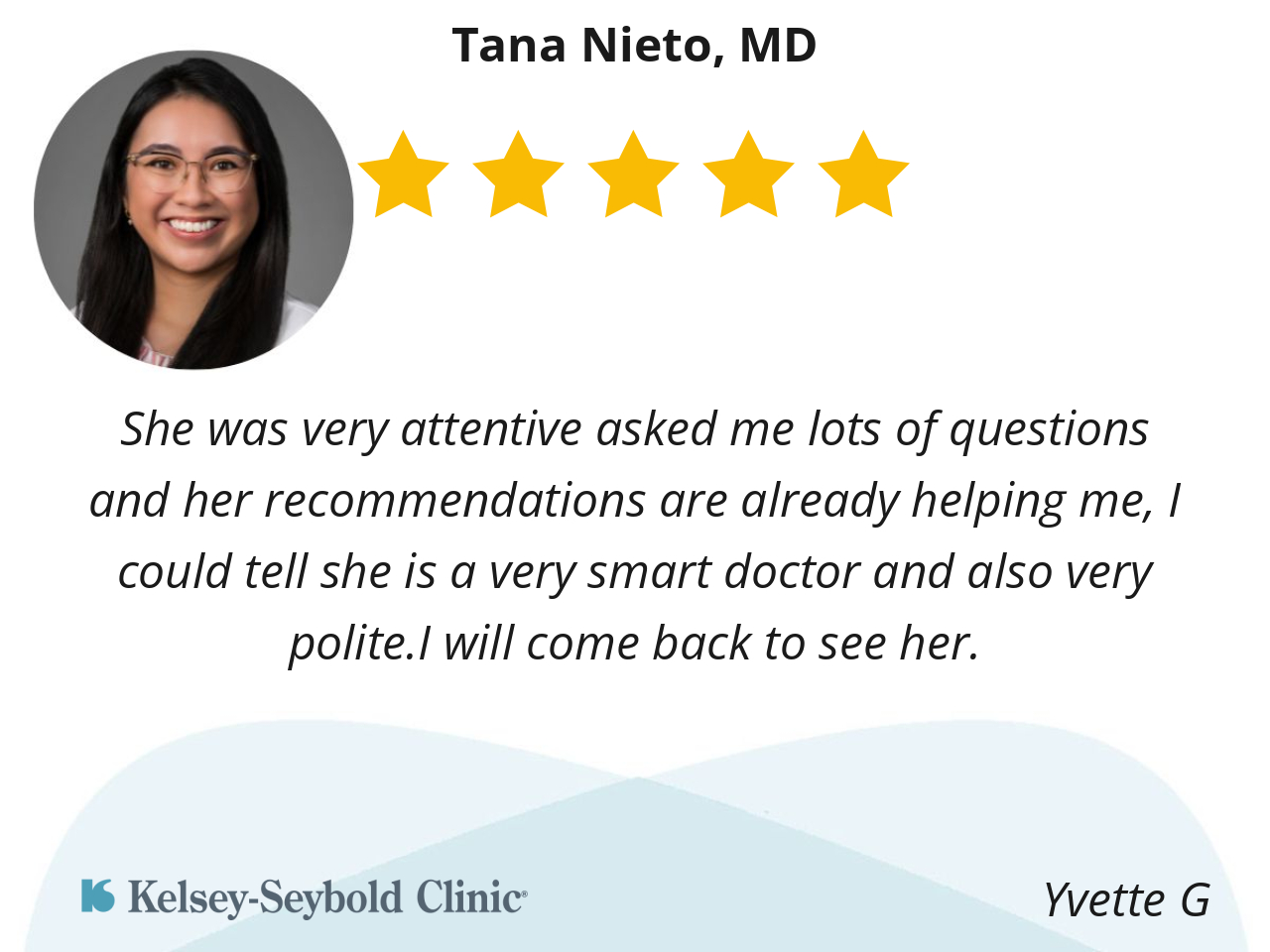 I felt comfortable discussing my health and concerns with Dr. Nieto.