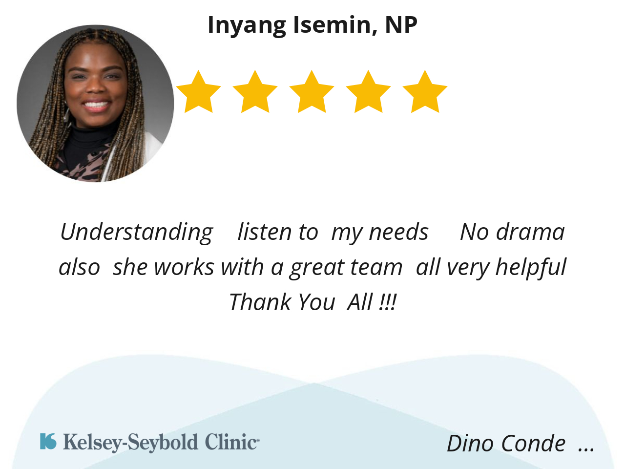 Inyang Isemin provided a five-star experience, she met all my needs and answered all my questions.