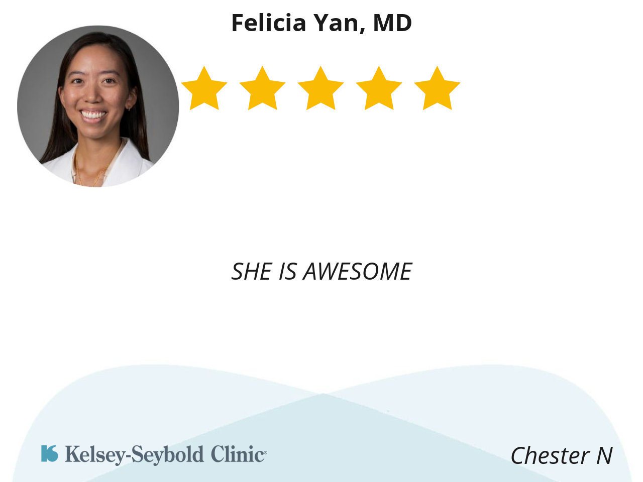 Dr. Yan is a very easy doctor to talk to. She made me feel comfortable in discussing things with her.