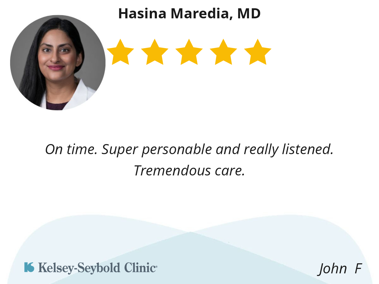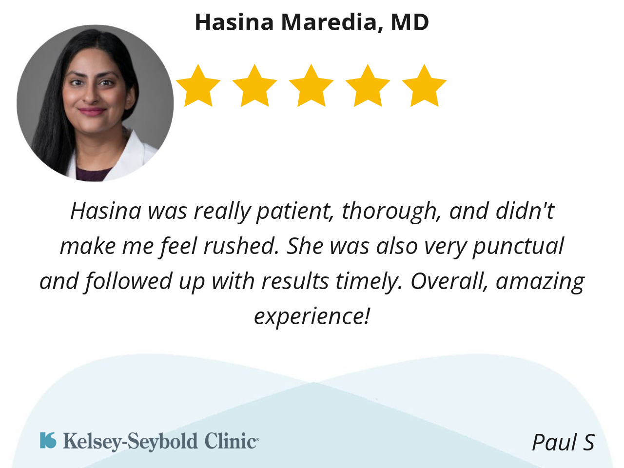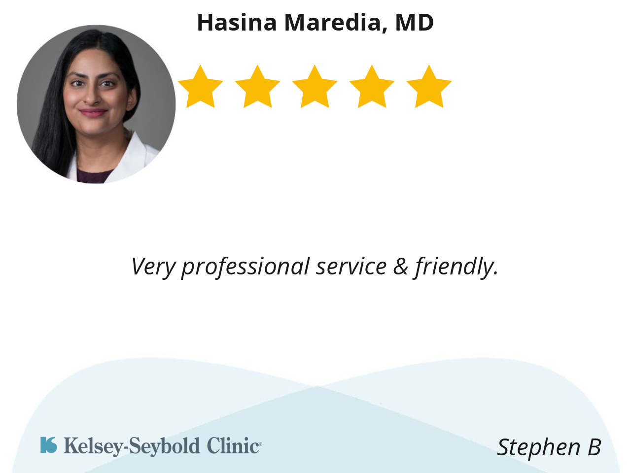Dr. Maredia is patient, and thorough in her explanations. And she listens and is pleasant.