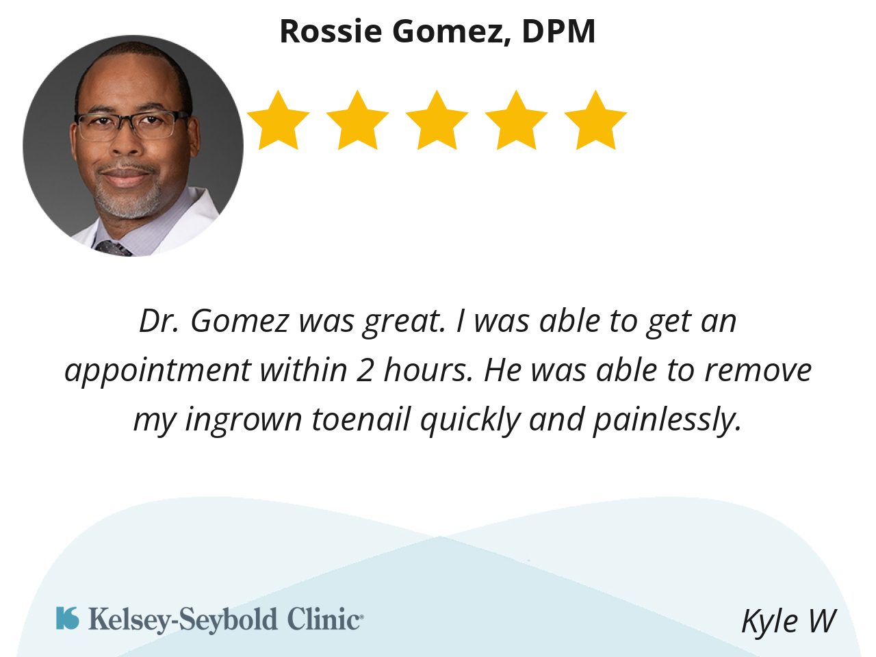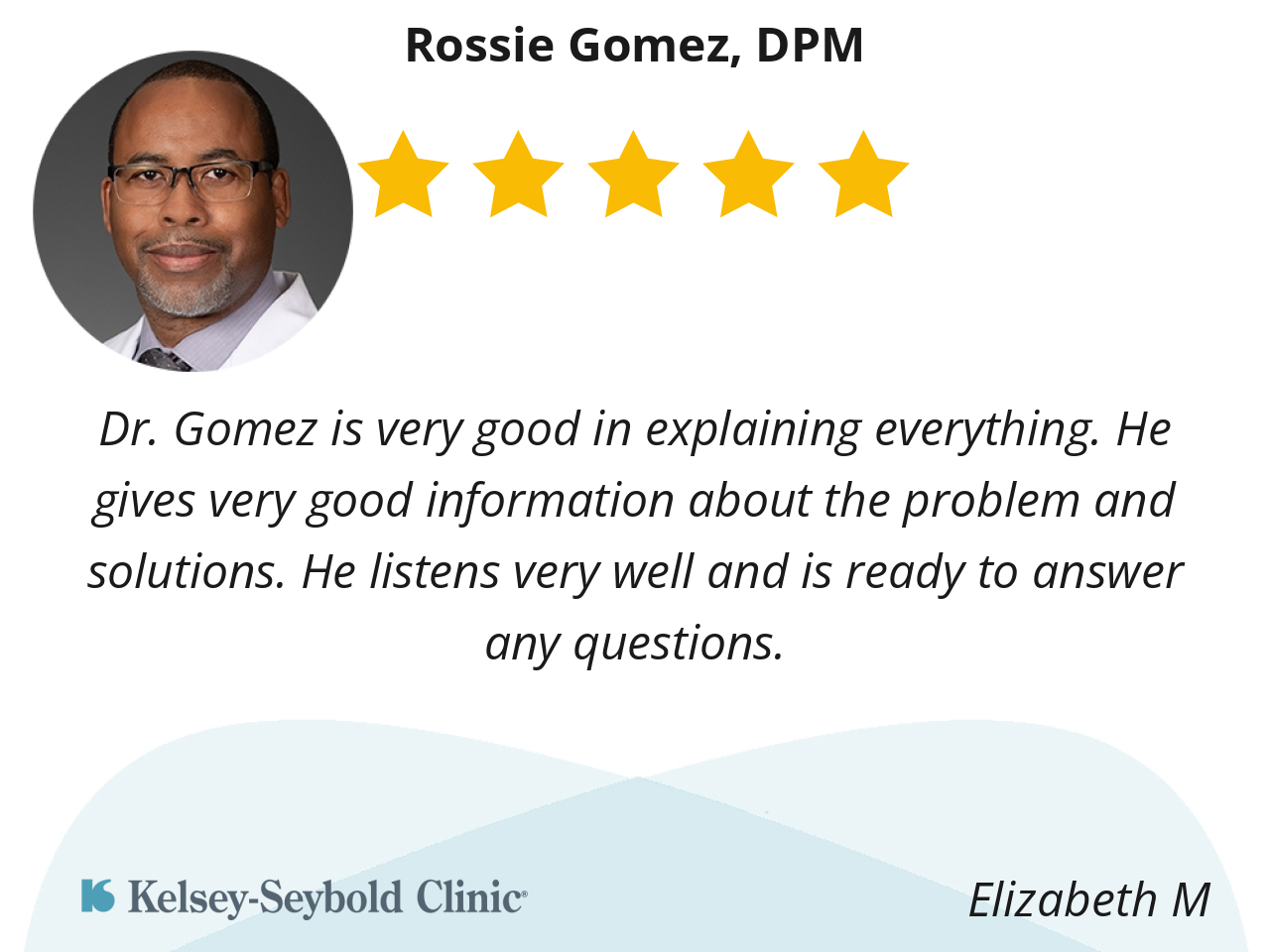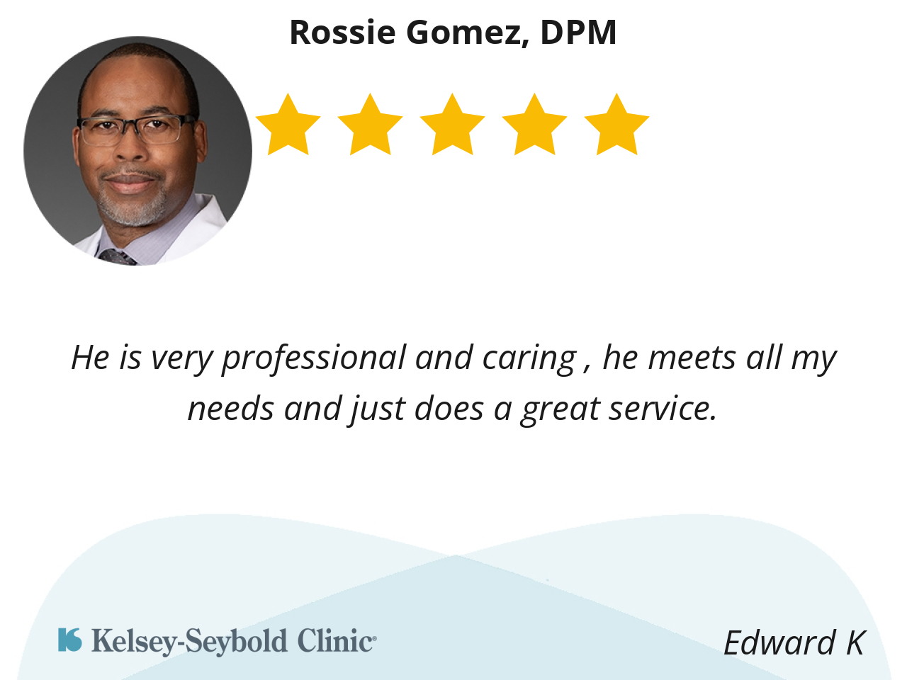 Dr. Gomez was great. I was able to get an appointment within 2 hours. He was able to remove my ingrown toenail quickly and painlessly.