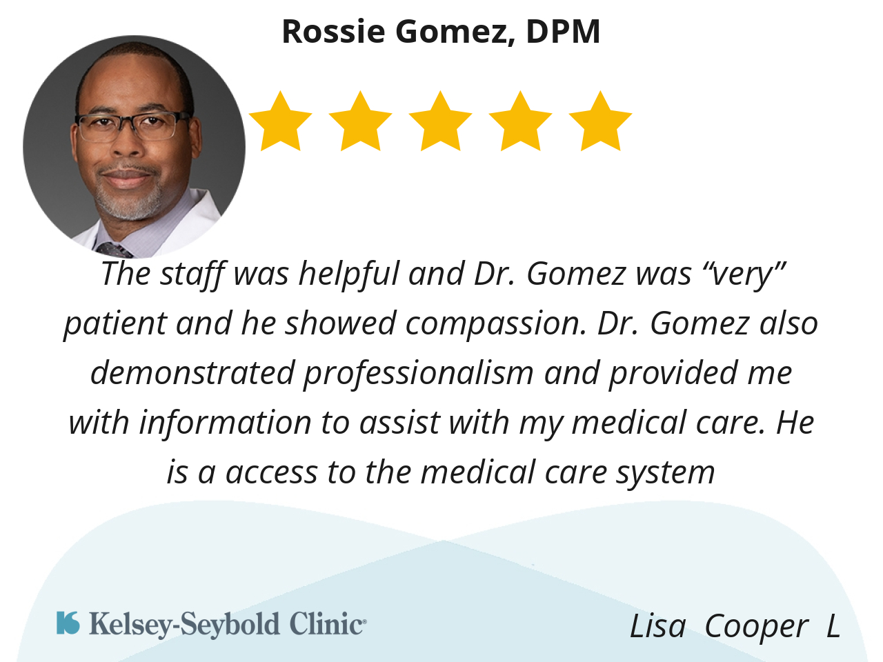 The staff was helpful and Dr. Gomez was “very” patient and he showed compassion. Dr. Gomez also demonstrated professionalism and provided me with information to assist with my medical care. He is a access to the medical care system