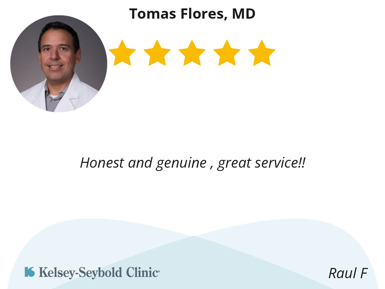 Dr. Flores is very knowledgeable, easy to talk to, as well as very thorough.