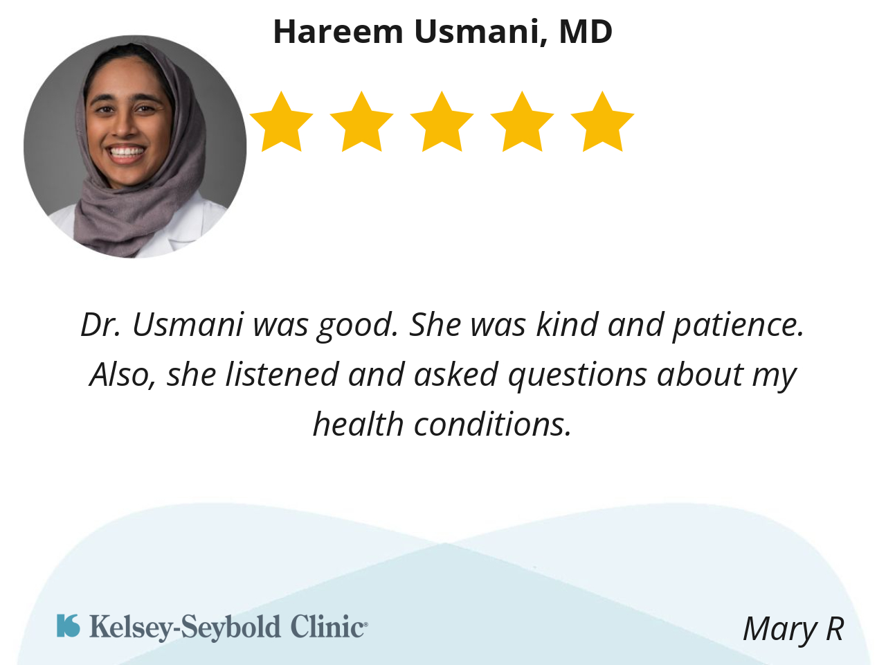 Dr. Usmani was good. She was kind and patience.