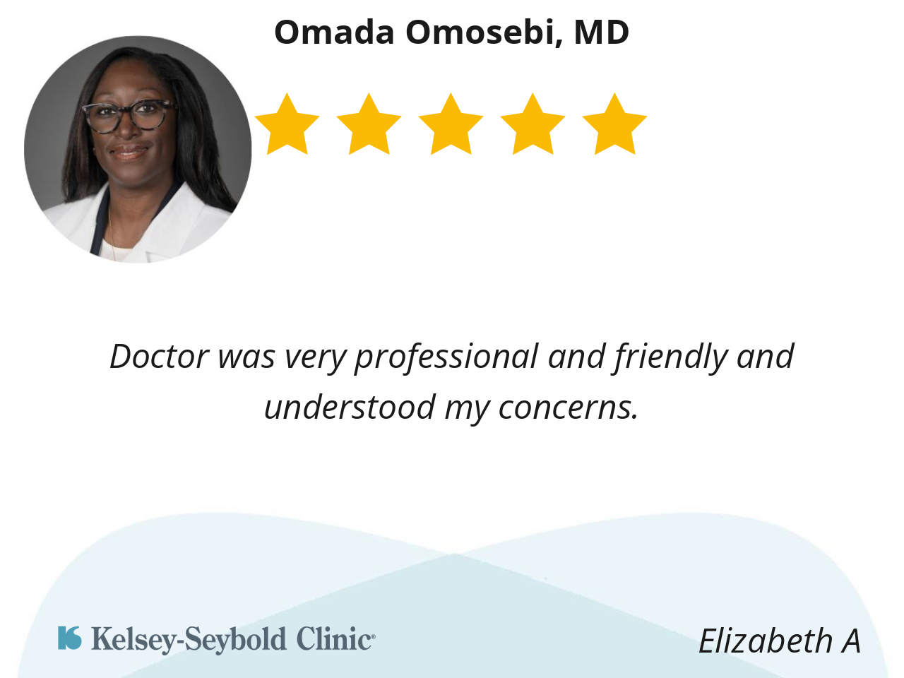 Dr. O was amazing. The appointment wasn't rushed. She asked lots of questions, and asked if I had any. She explained everything and gave lots of information.