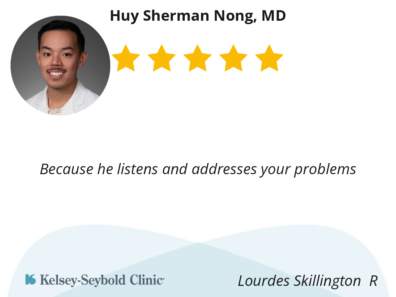 Dr. Nong was great to analyze me and take good care of me. Him and my other PCP worked hand in hand