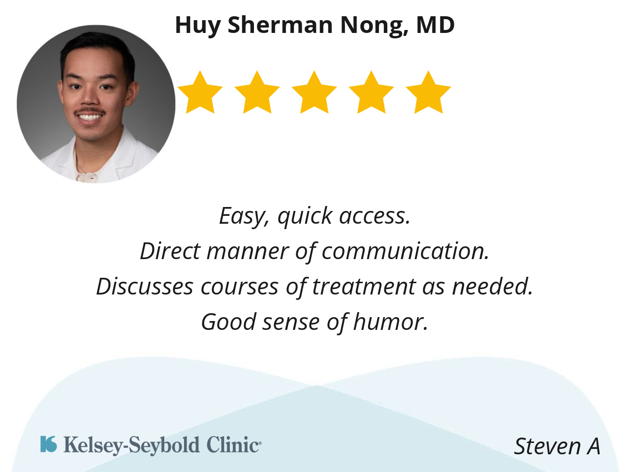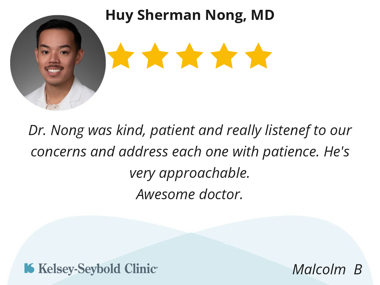 Dr. Nong was kind, patient and really listenef to our concerns and address each one with patience. He's very approachable.