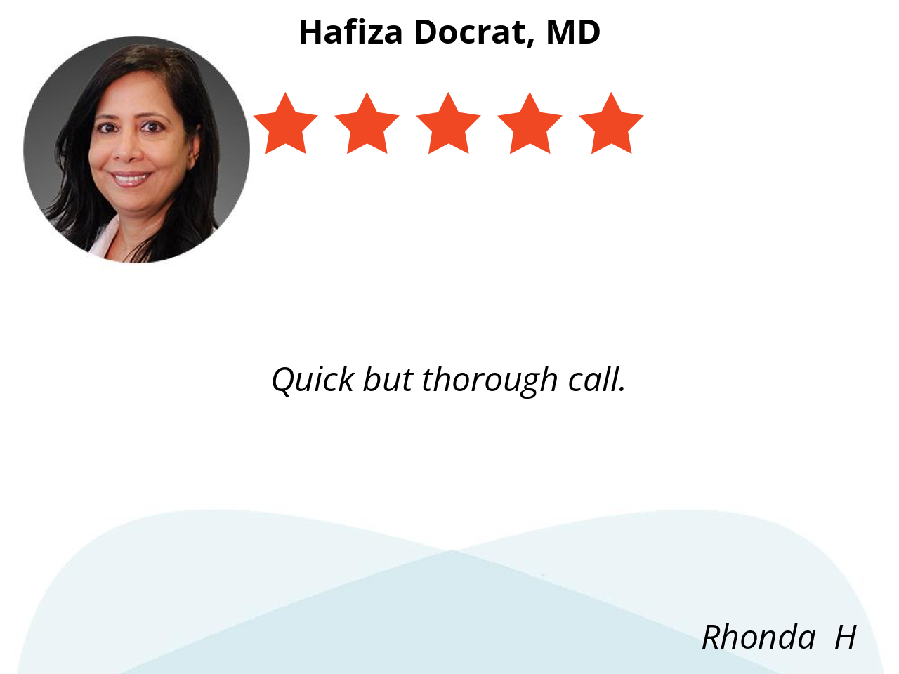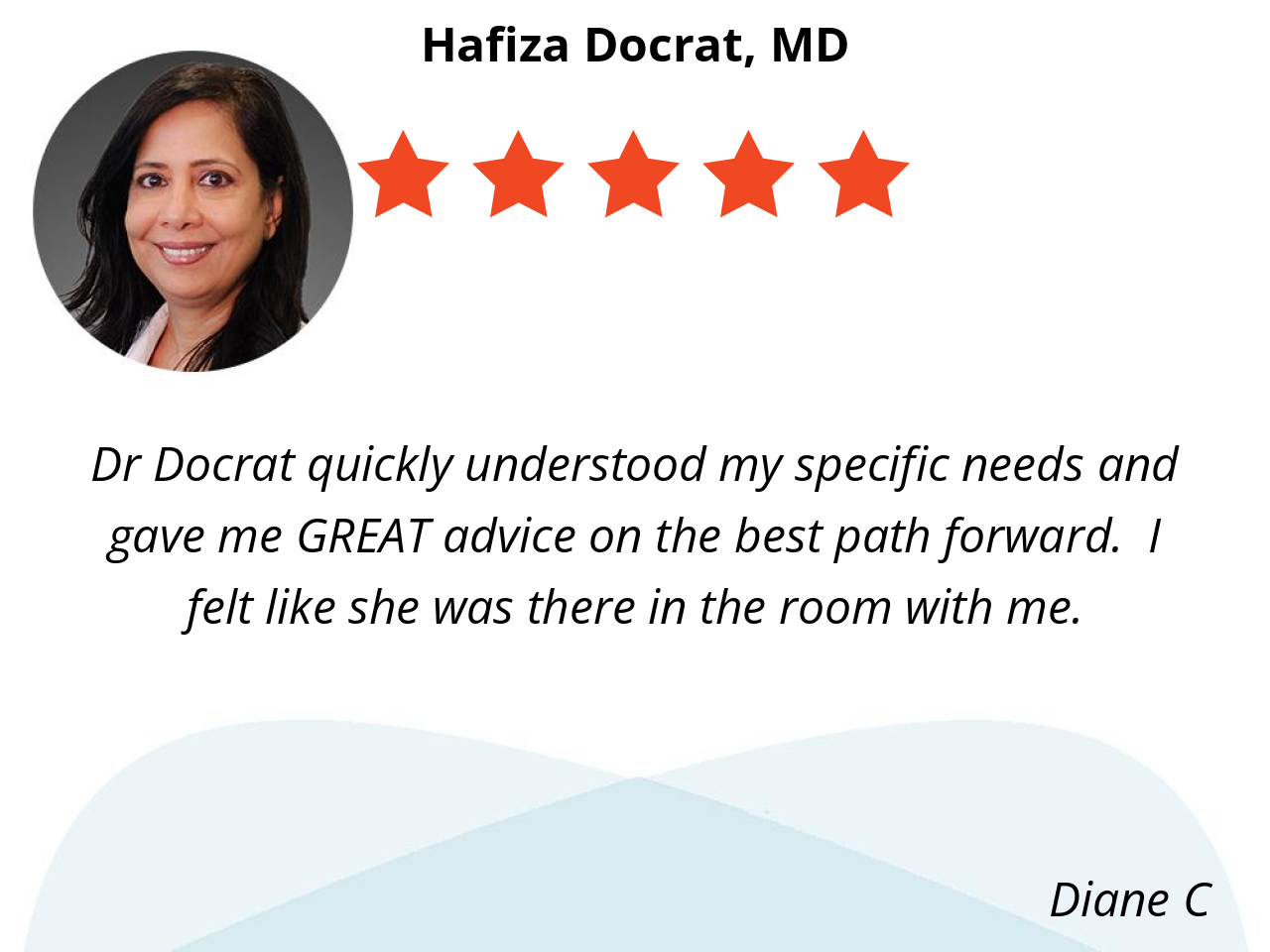 Dr Docrat quickly understood my specific needs and gave me GREAT advice on the best path forward. I felt like she was there in the room with me.