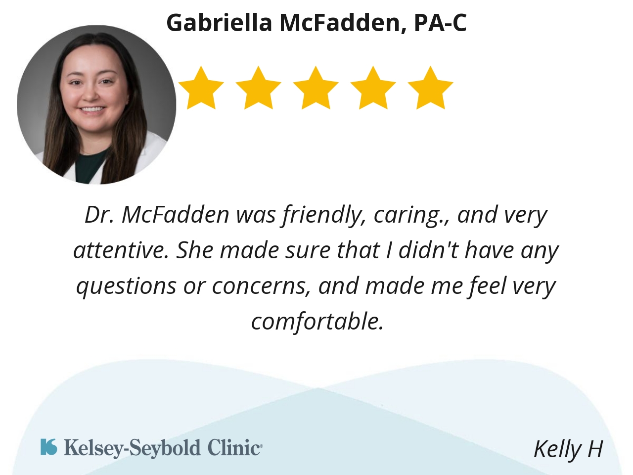 Dr. McFadden was friendly, caring., and very attentive. She made sure that I didn't have any questions or concerns, and made me feel very comfortable.