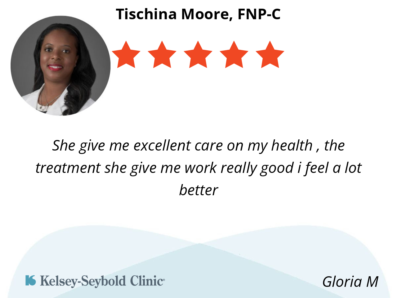 She give me excellent care on my health , the treatment she give me work really good i feel a lot better