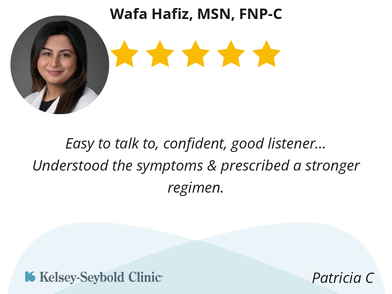 Very easy communication. She spent time reviewing my history and asking questions to get a full picture of what was going on. Very knowledgeable and thorough. Great personality.