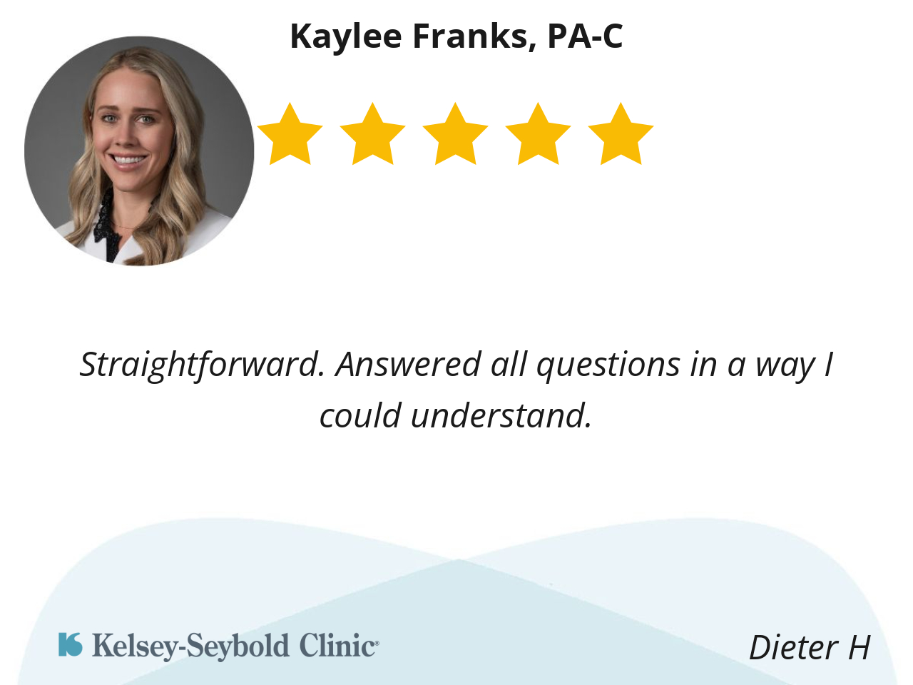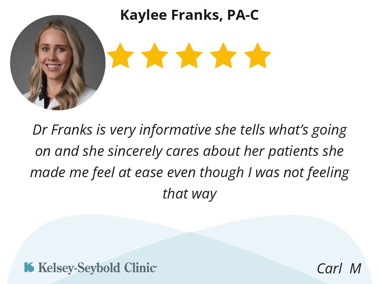 Dr Franks is very informative she tells what’s going on and she sincerely cares about her patients she made me feel at ease even though I was not feeling that way