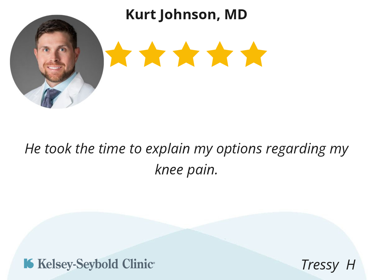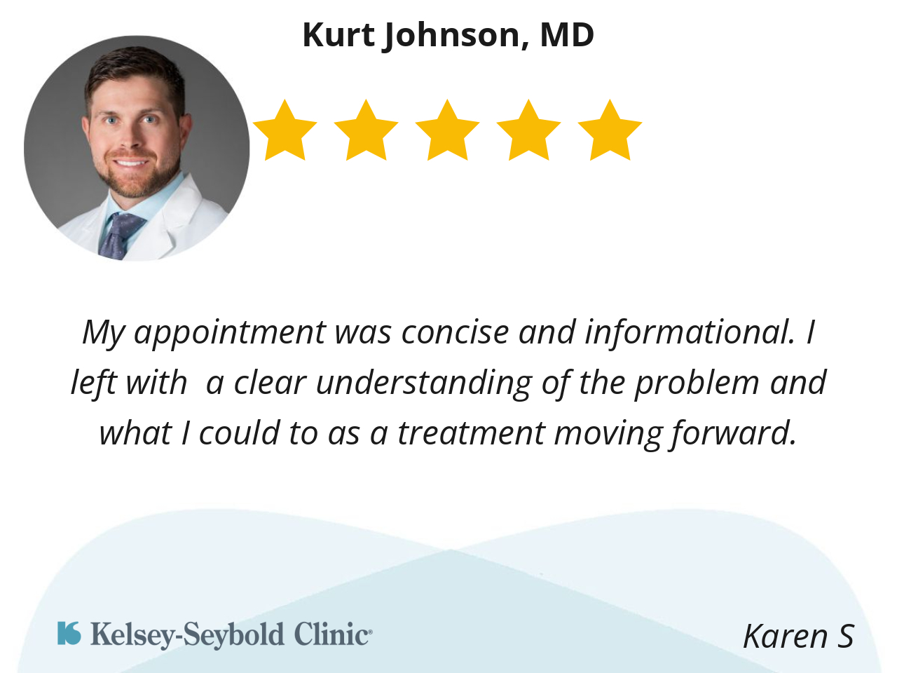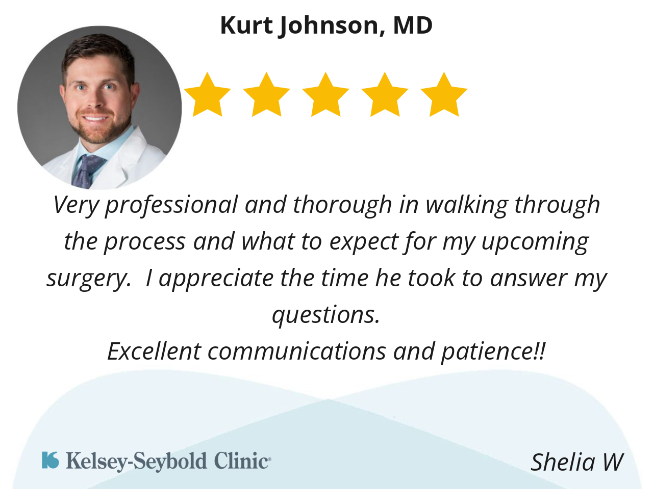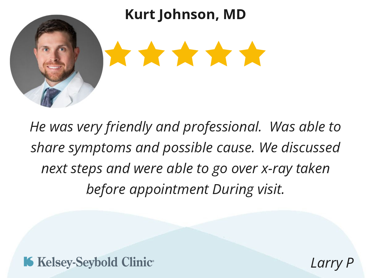 Dr. Johnson is very efficient, he’s also kind and very nice, easy to talk to. He listens to and answers all of my questions. Plus his after visit summaries include a lot of great supplemental information that I can use as a reference for my future care.
