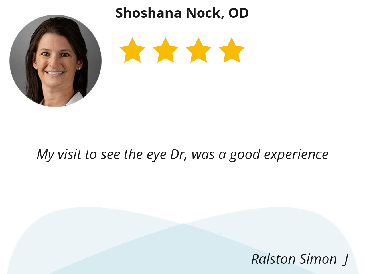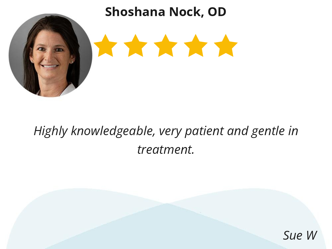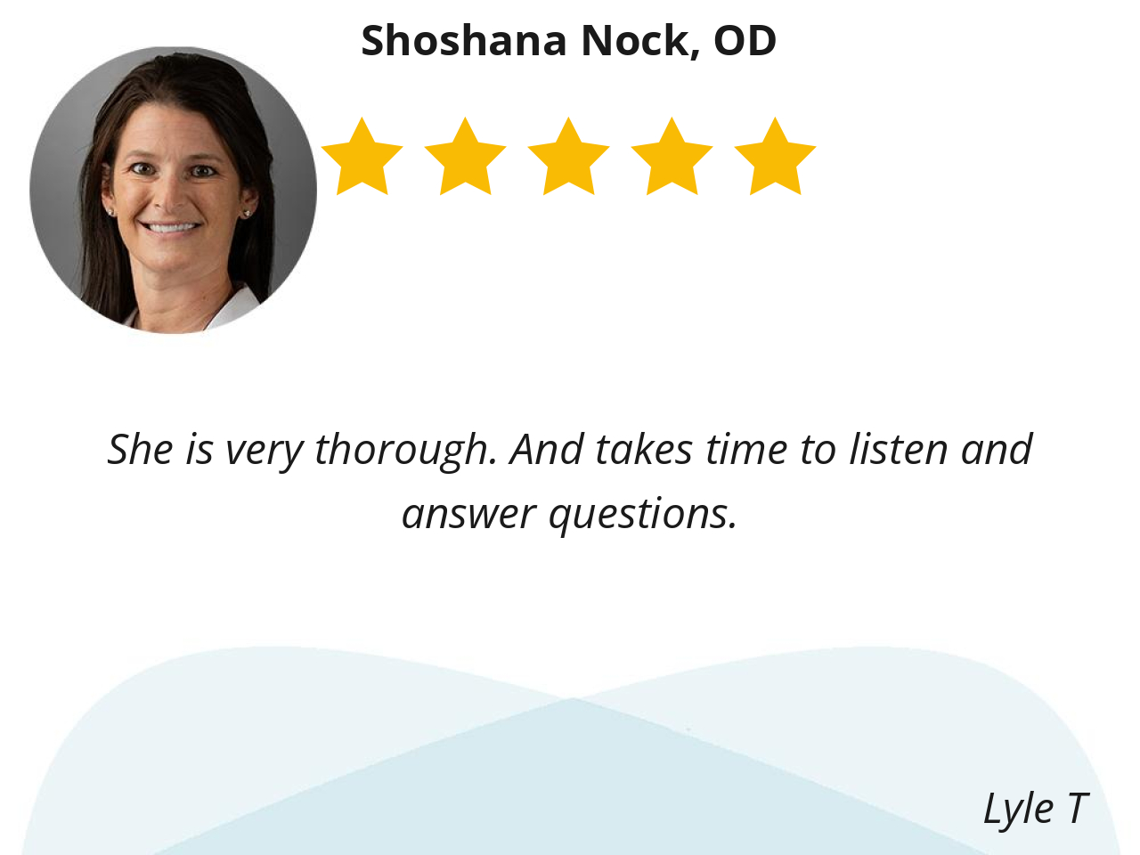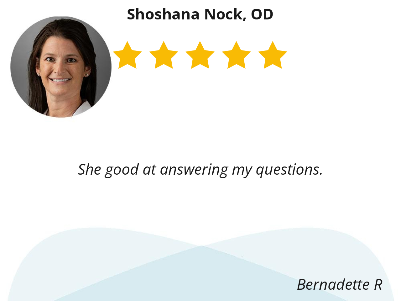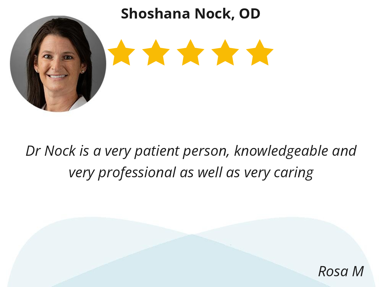 Dr. Nock is very professional while being also very personable. She took the time to answer all my questions and did not rush my appointment. Thank you Dr Nock and Nikki.