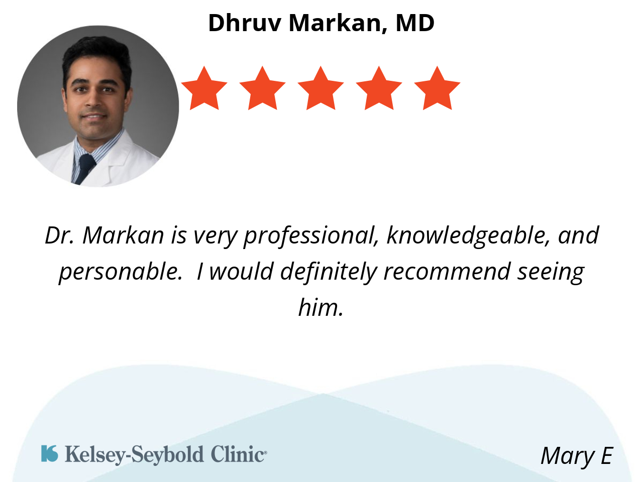 Dr. Markan is very professional, knowledgeable, and personable. I would definitely recommend seeing him.