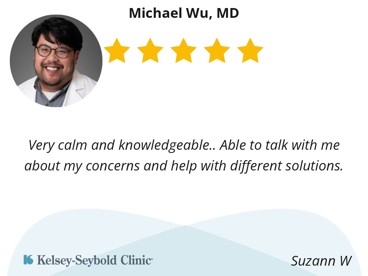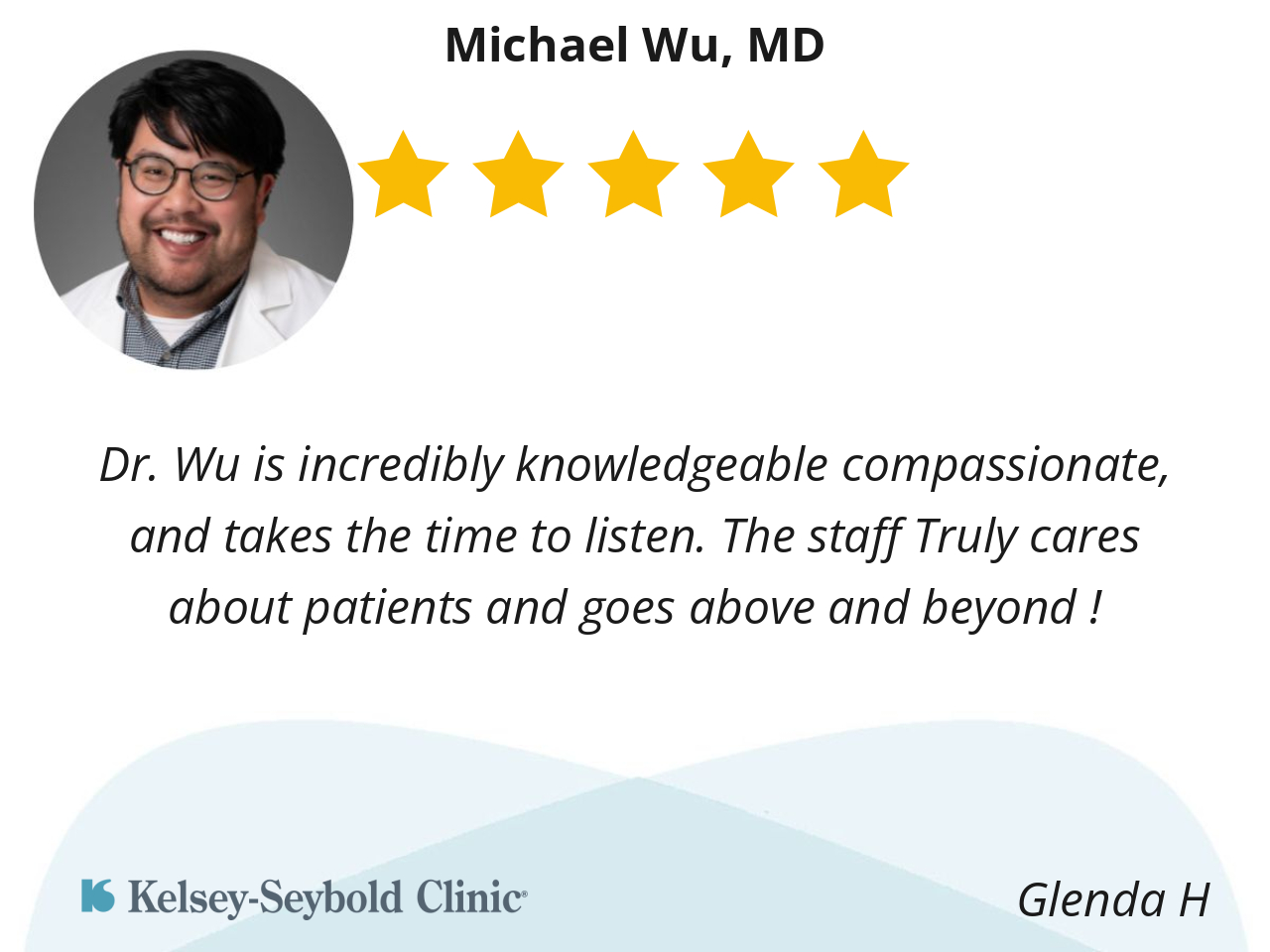 Dr. Wu is incredibly knowledgeable compassionate, and takes the time to listen. The staff Truly cares about patients and goes above and beyond !