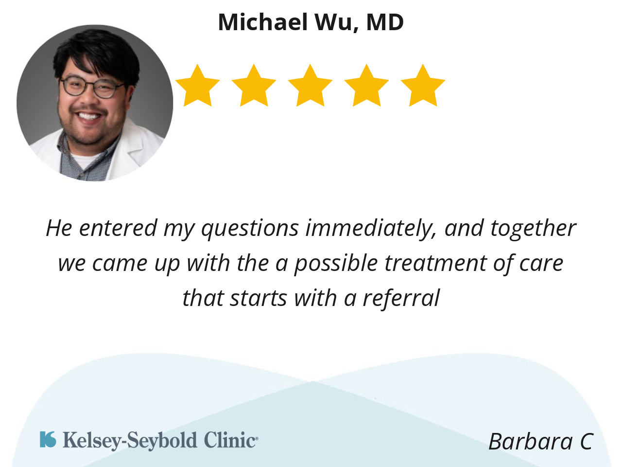 Dr Wu is attentive and knowledgeable. He is very receptive to answering questions including quick responses to My Kelsey messaging.