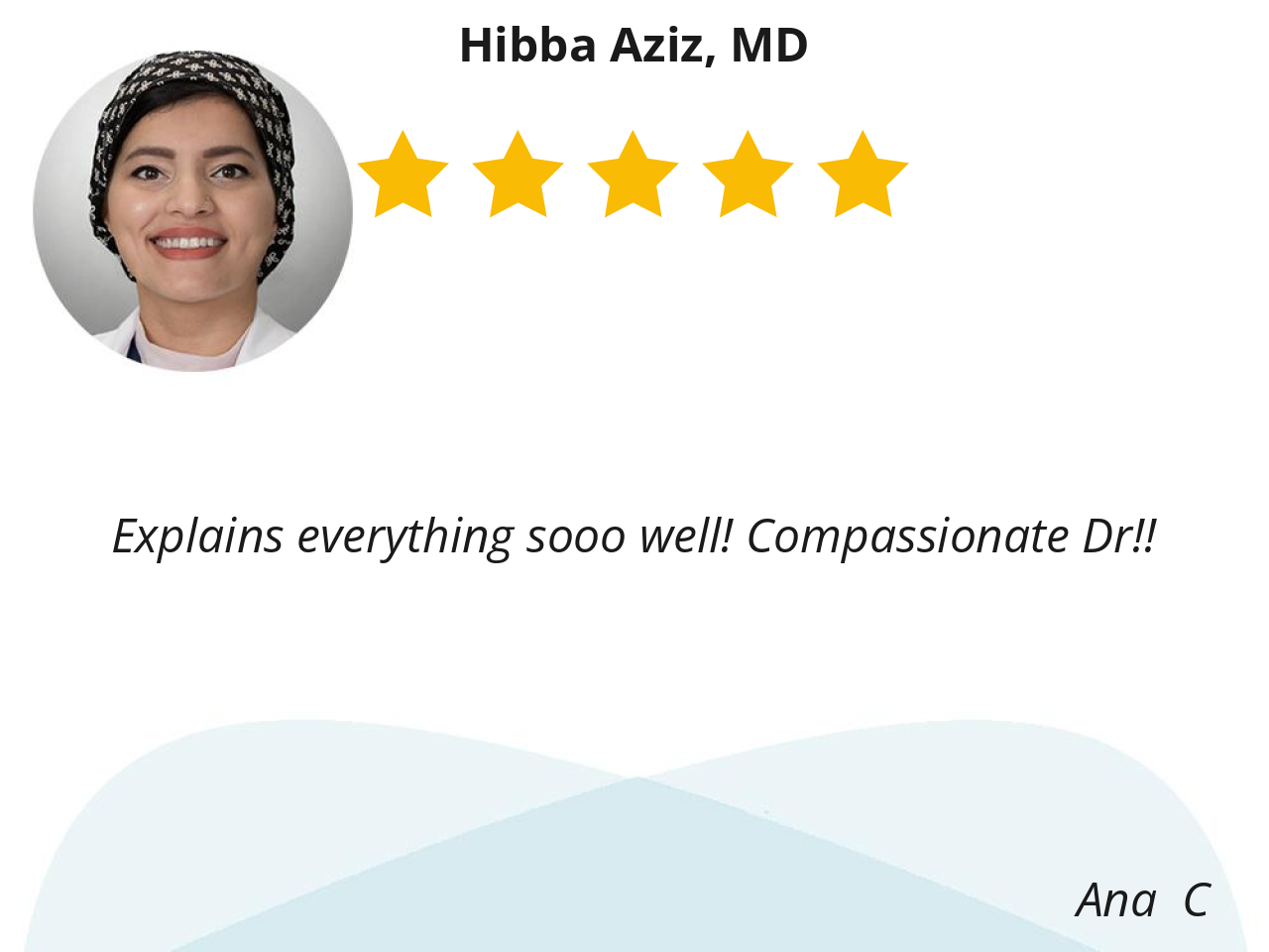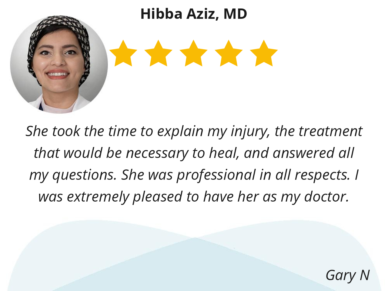 Dr. Aziz is very professional and thorough. I highly recommend Dr. Aziz to anyone seeking medical care.