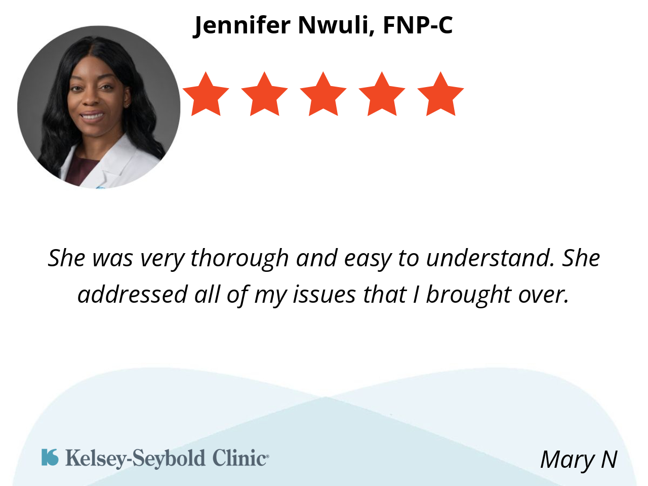 I had an excellent experience with FNP- Jennifer. She was professional, knowledgeable, and took the time to truly listen to my concerns. Her thorough explanations and compassionate care made me feel comfortable and confident throughout my visit. It’s clear she genuinely cares about her patients and goes above and beyond to provide quality care. I highly recommend Jennifer to anyone looking for a skilled and attentive healthcare provider.