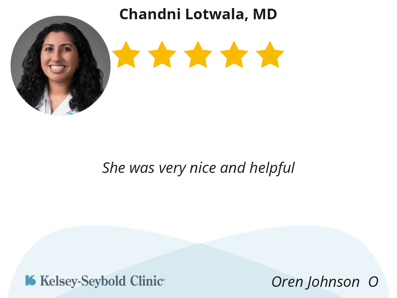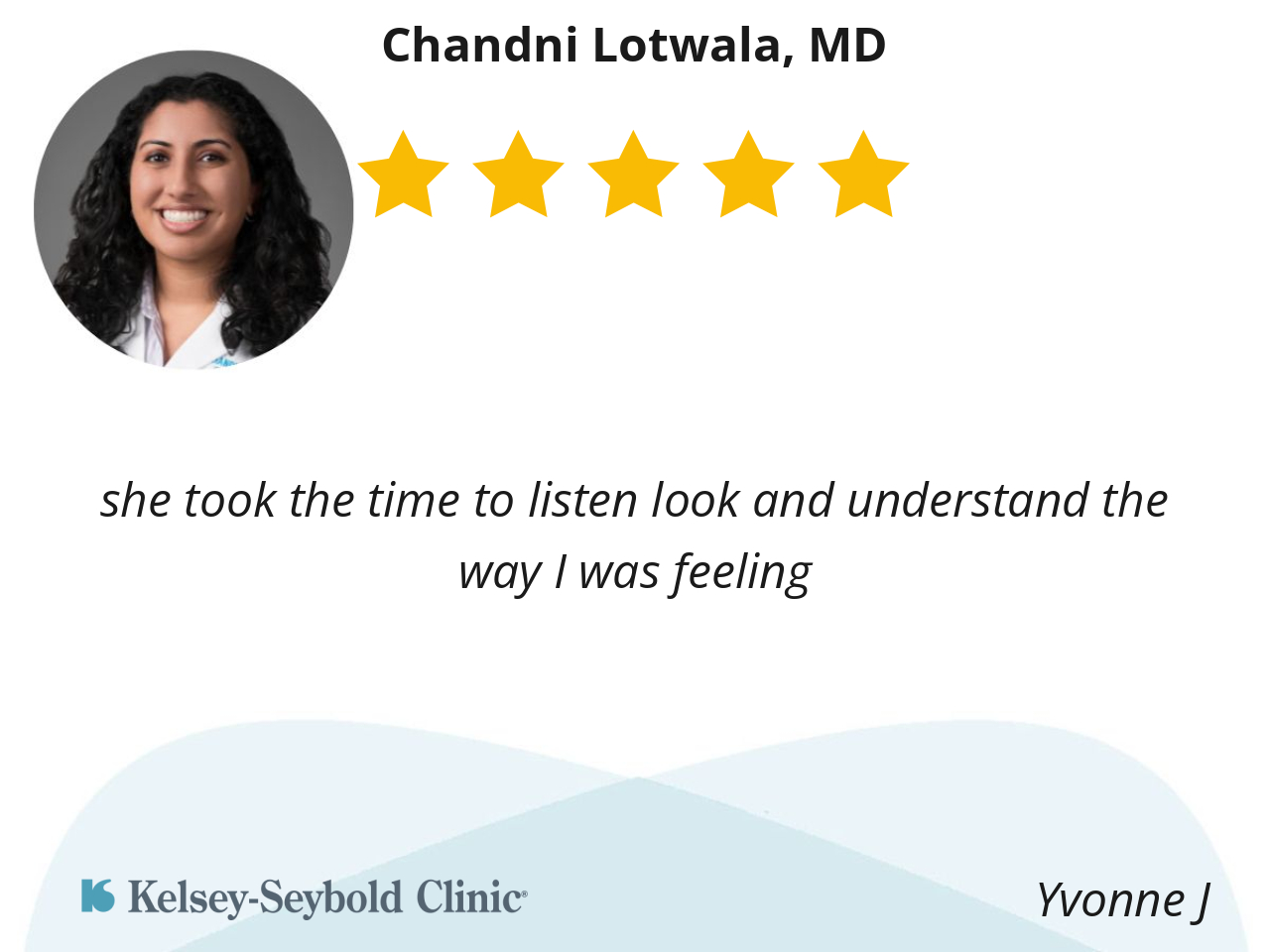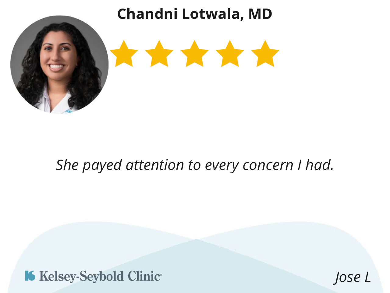 I had a good experience with Dr. Lotwala b/c she was very responsive to what I had to say and she would compromise with me when we had opposing thoughts or different ideas. Thank you, Doc
