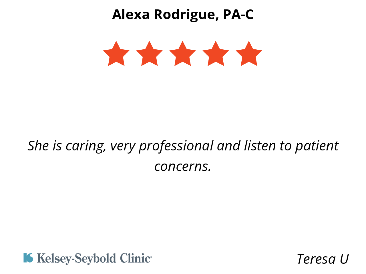 She is caring, very professional and listen to patient concerns.