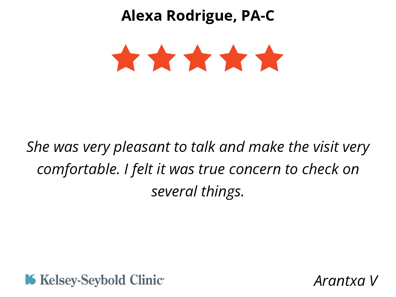 She was very pleasant to talk and make the visit very comfortable. I felt it was true concern to check on several things.