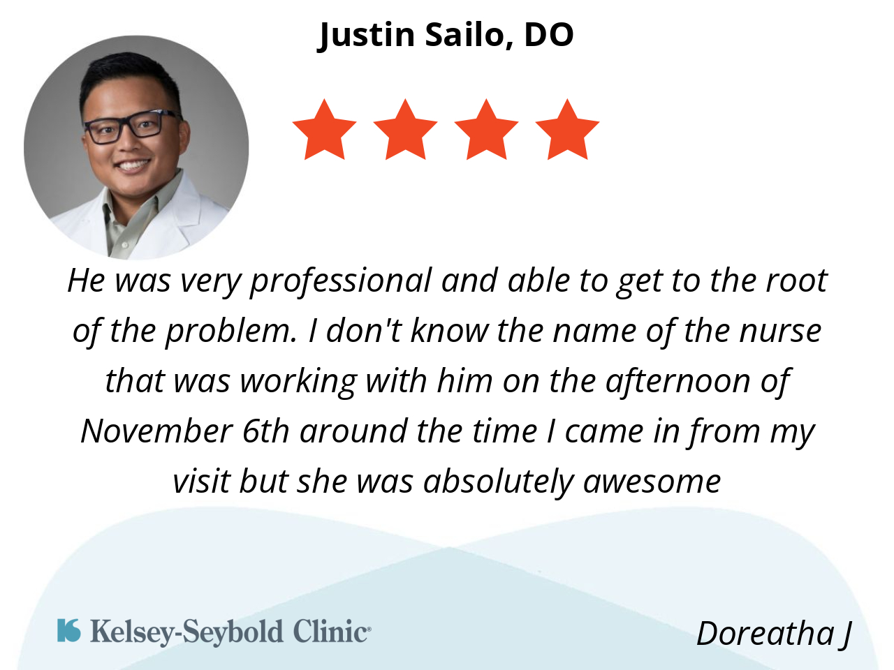 He was very professional and able to get to the root of the problem. I don't know the name of the nurse that was working with him on the afternoon of November 6th around the time I came in from my visit but she was absolutely awesome