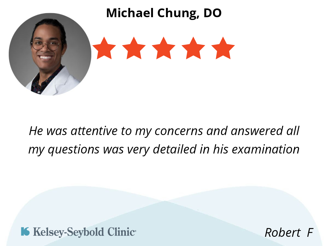 He is a good listener. Is thorough. And I felt very comfortable with him.