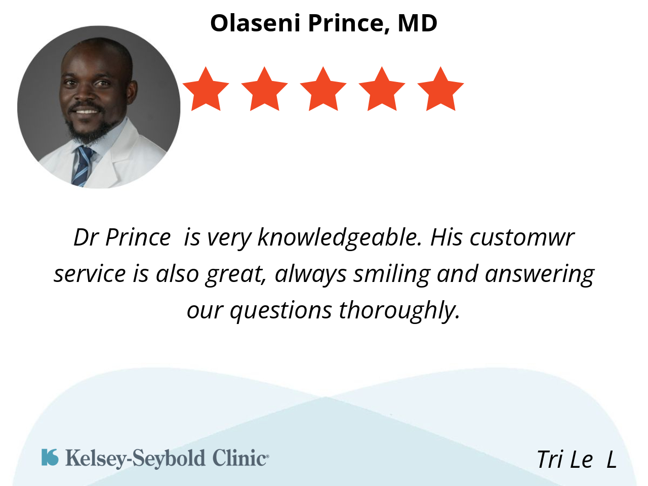 Dr Prince is very knowledgeable. His customwr service is also great, always smiling and answering our questions thoroughly.