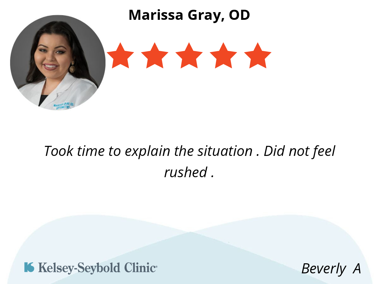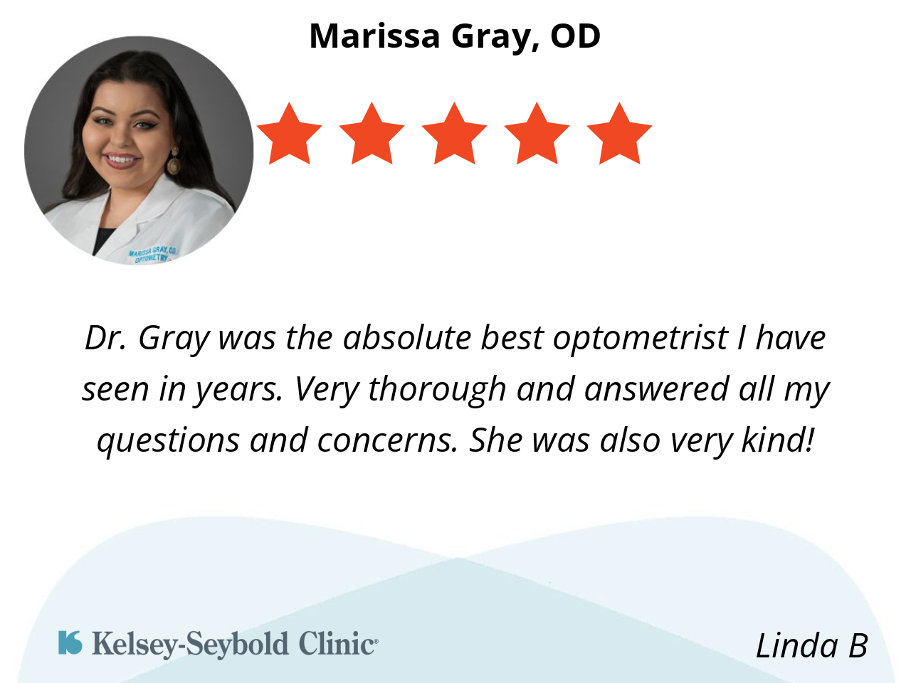 Dr. Gray was the absolute best optometrist I have seen in years. Very thorough and answered all my questions and concerns. She was also very kind!