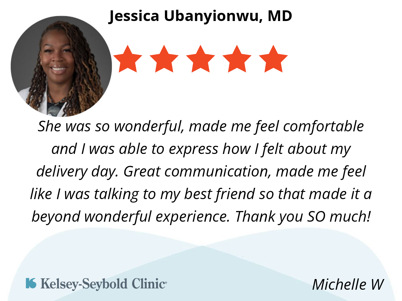 She was so wonderful, made me feel comfortable and I was able to express how I felt about my delivery day. Great communication, made me feel like I was talking to my best friend so that made it a beyond wonderful experience. Thank you SO much!