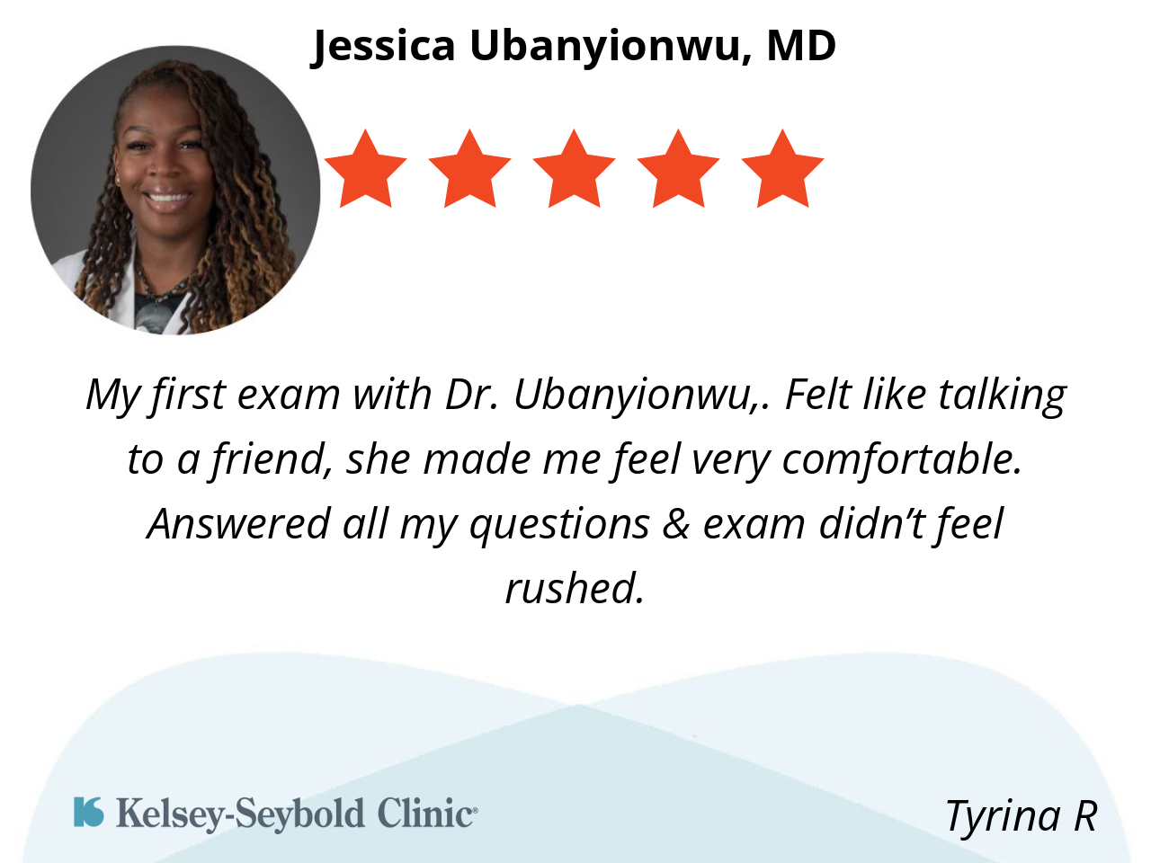 My first exam with Dr. Ubanyionwu,. Felt like talking to a friend, she made me feel very comfortable. Answered all my questions & exam didn’t feel rushed.