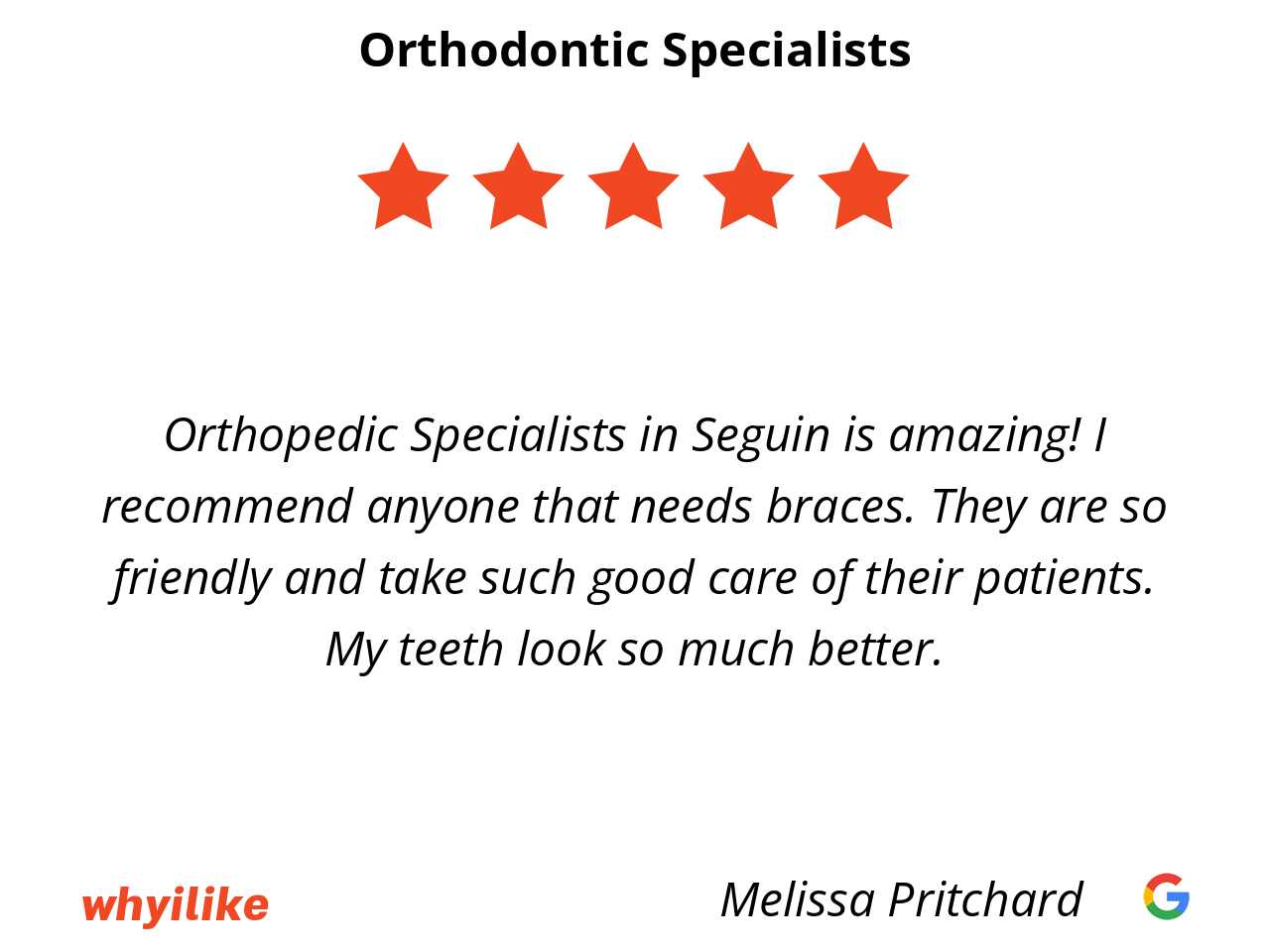 Orthopedic Specialists in Seguin is amazing! I recommend anyone that needs braces. They are so friendly and take such good care of their patients. My teeth look so much better.