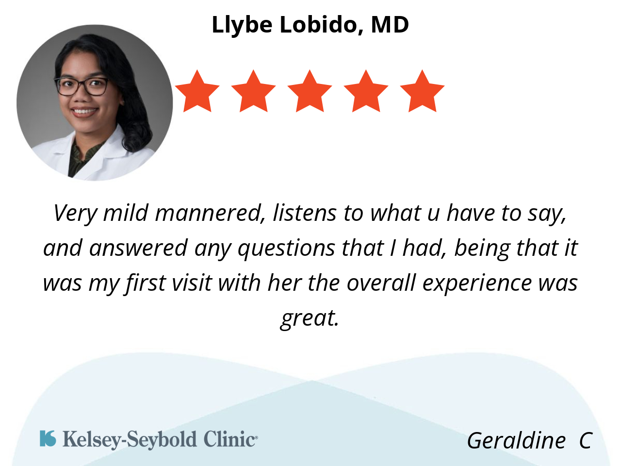Such a sweet doctor and very gentle and caring during the physical exam. Really appreciated her attention.