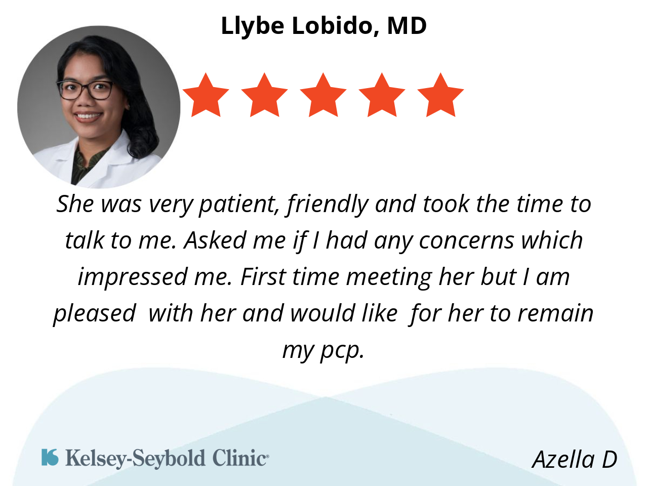 She was very patient, friendly and took the time to talk to me. Asked me if I had any concerns which impressed me. First time meeting her but I am pleased with her and would like for her to remain my pcp.