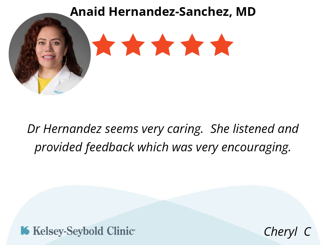 Dr Hernandez seems very caring. She listened and provided feedback which was very encouraging.